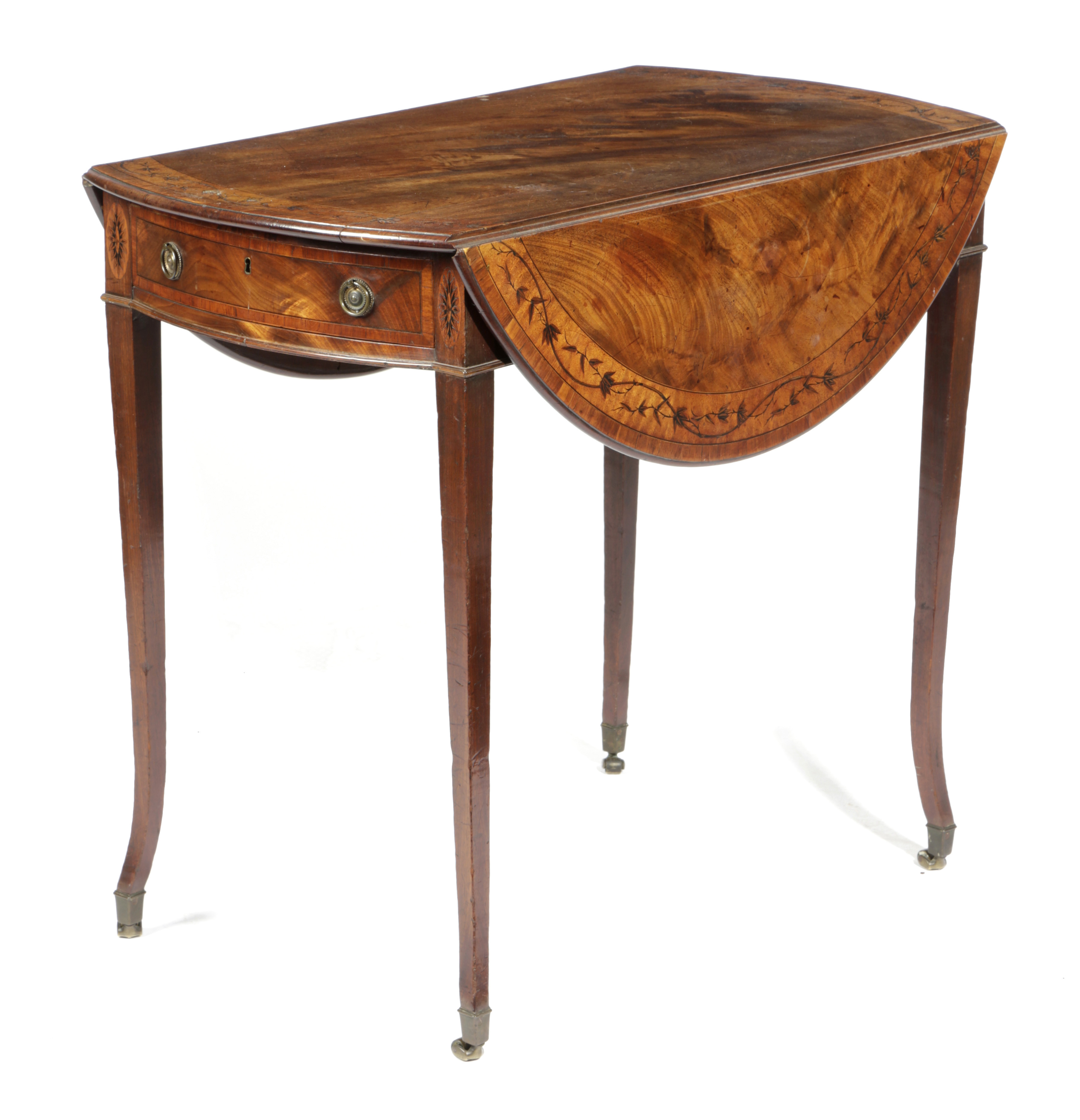 A FINE GEORGE III MAHOGANY AND MARQUETRY PEMBROKE TABLE