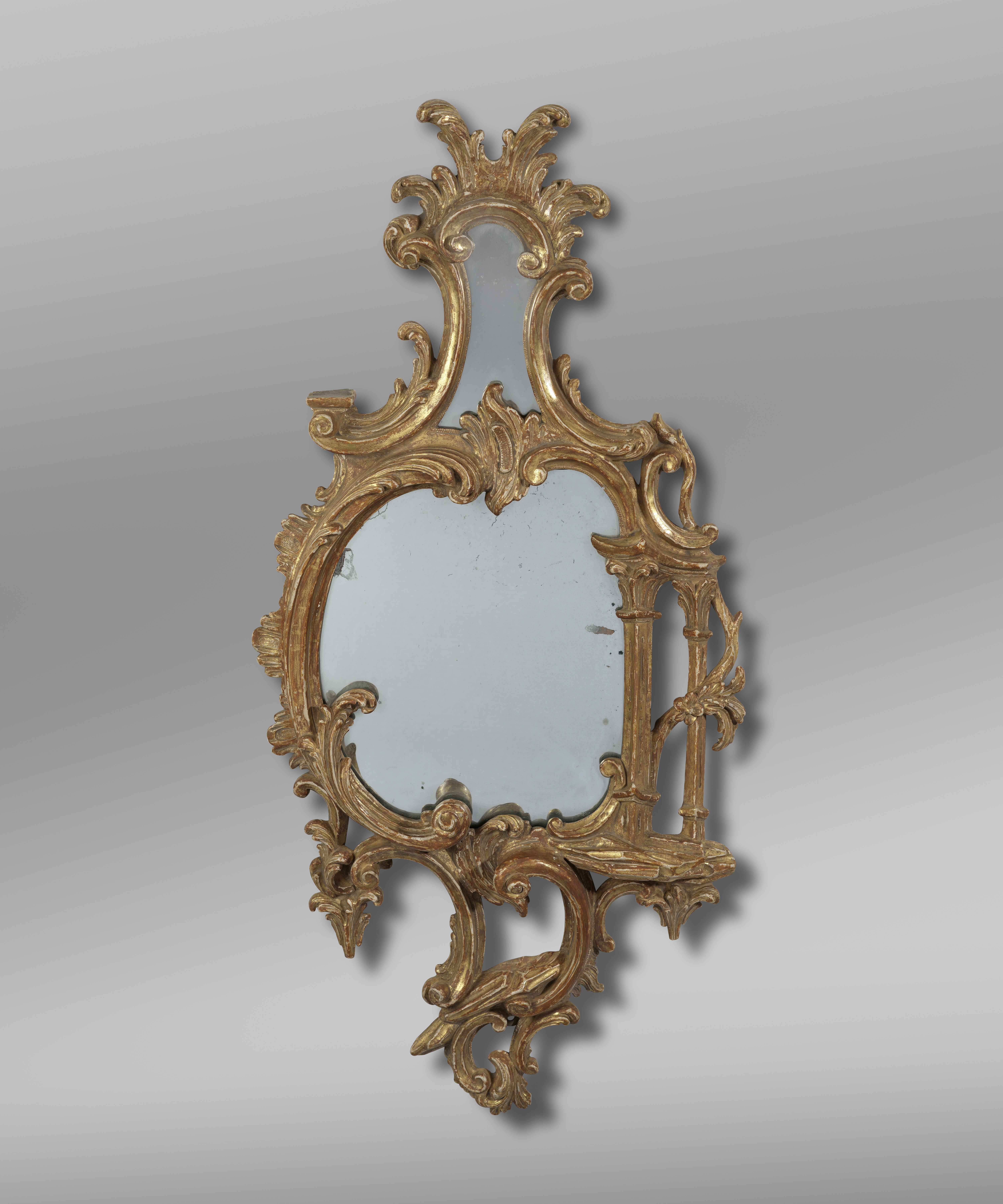 AN EARLY GEORGE III GILTWOOD ROCOCO WALL MIRROR