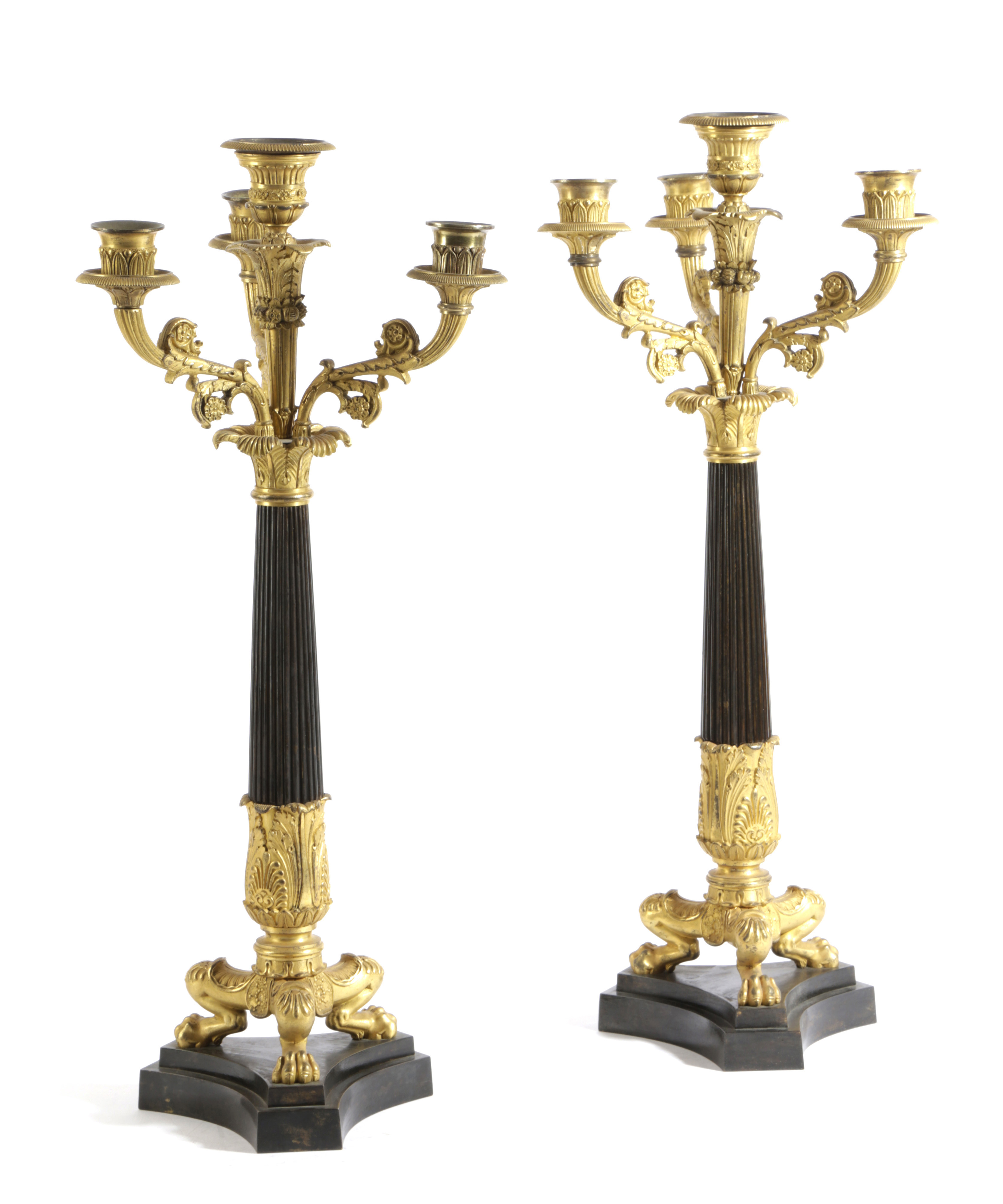 A PAIR OF REGENCY GILT AND PATINATED BRONZE CANDELABRA