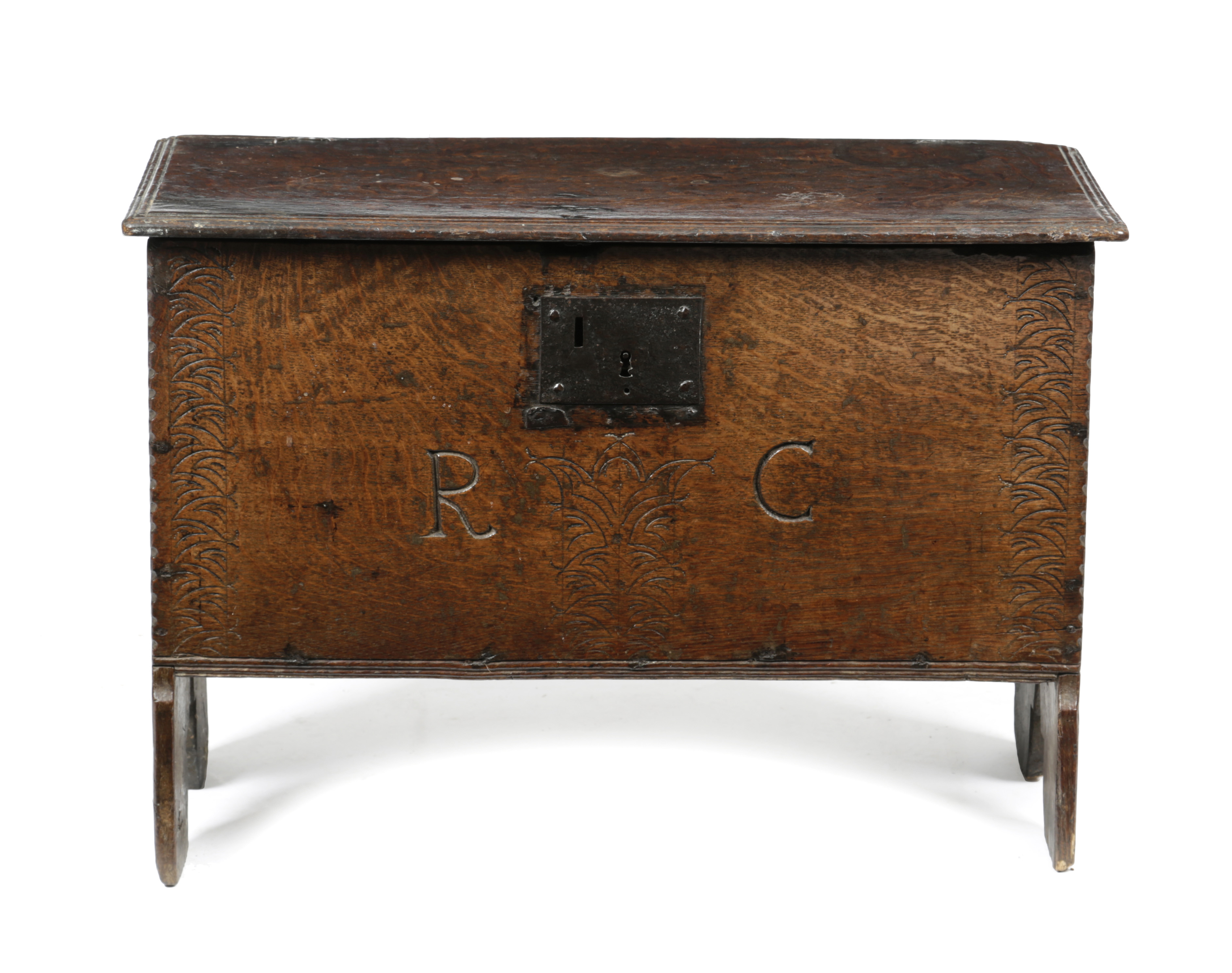 A CHARLES II BOARDED OAK CHEST