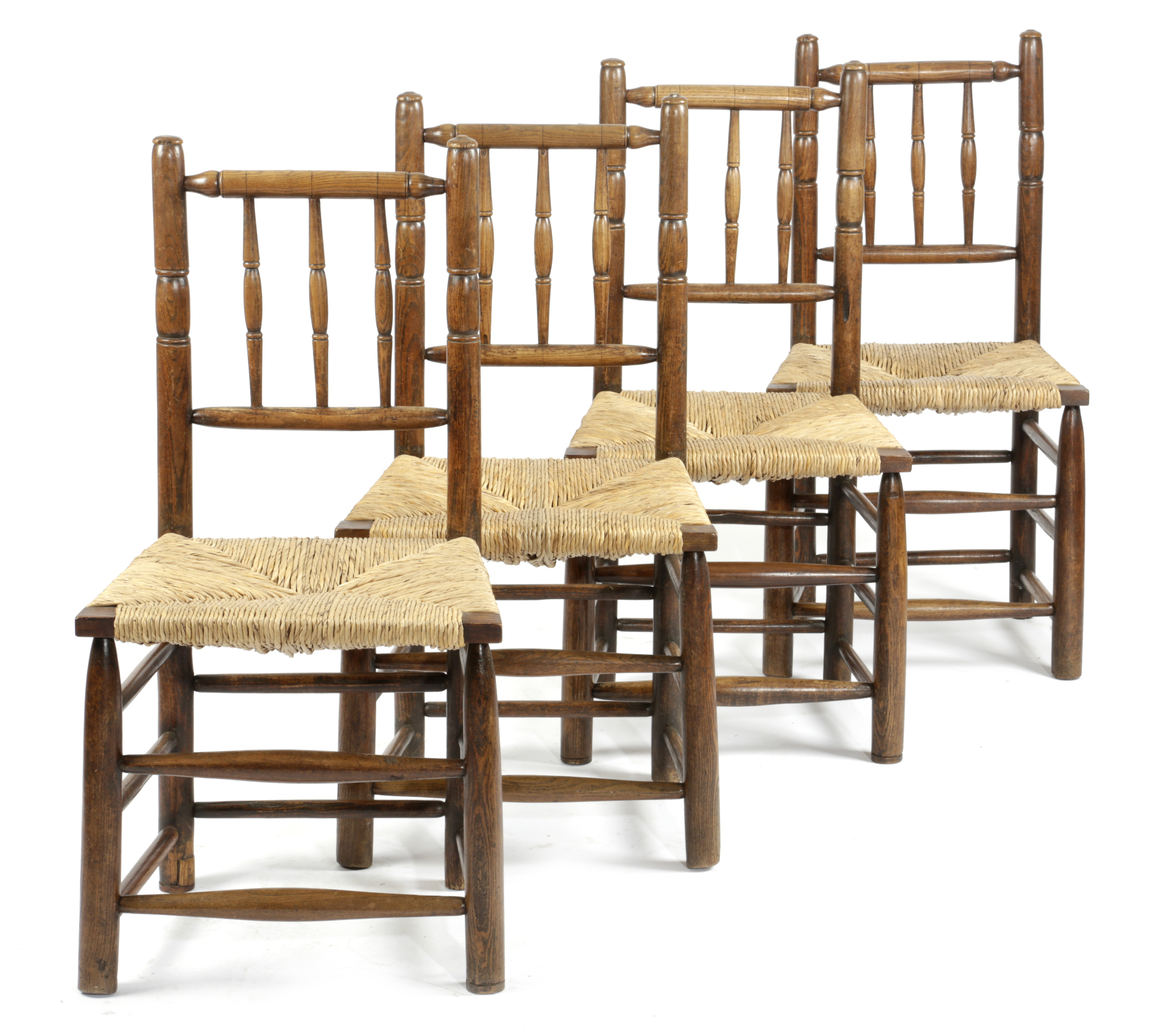 each with a spindle back above a rush seat (4)