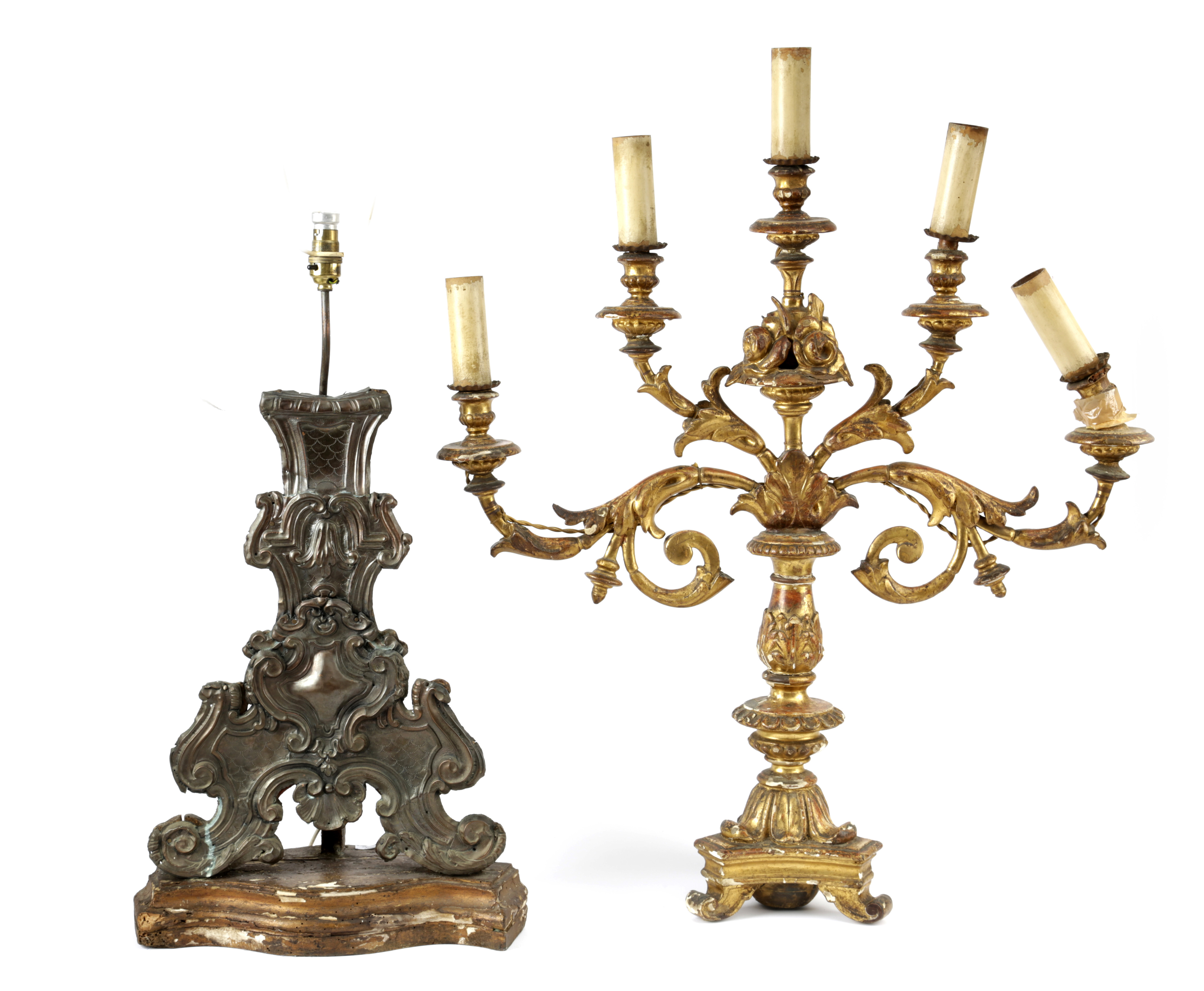 AN ITALIAN GILTWOOD CANDELABRA TABLE LAMP