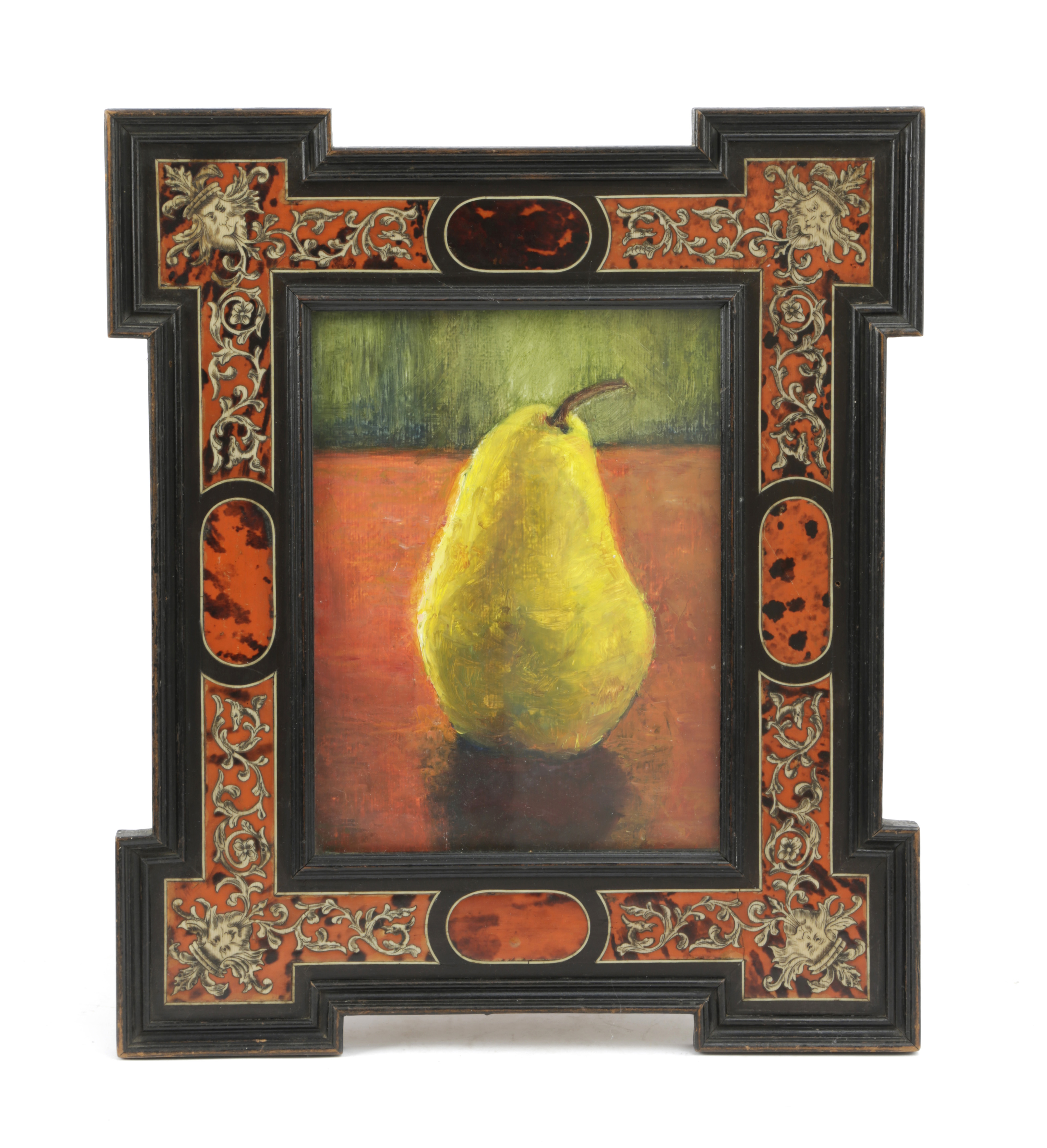 the rectangular aperture surrounded by ivory masks and scrolling foliage on a tortoiseshell ground