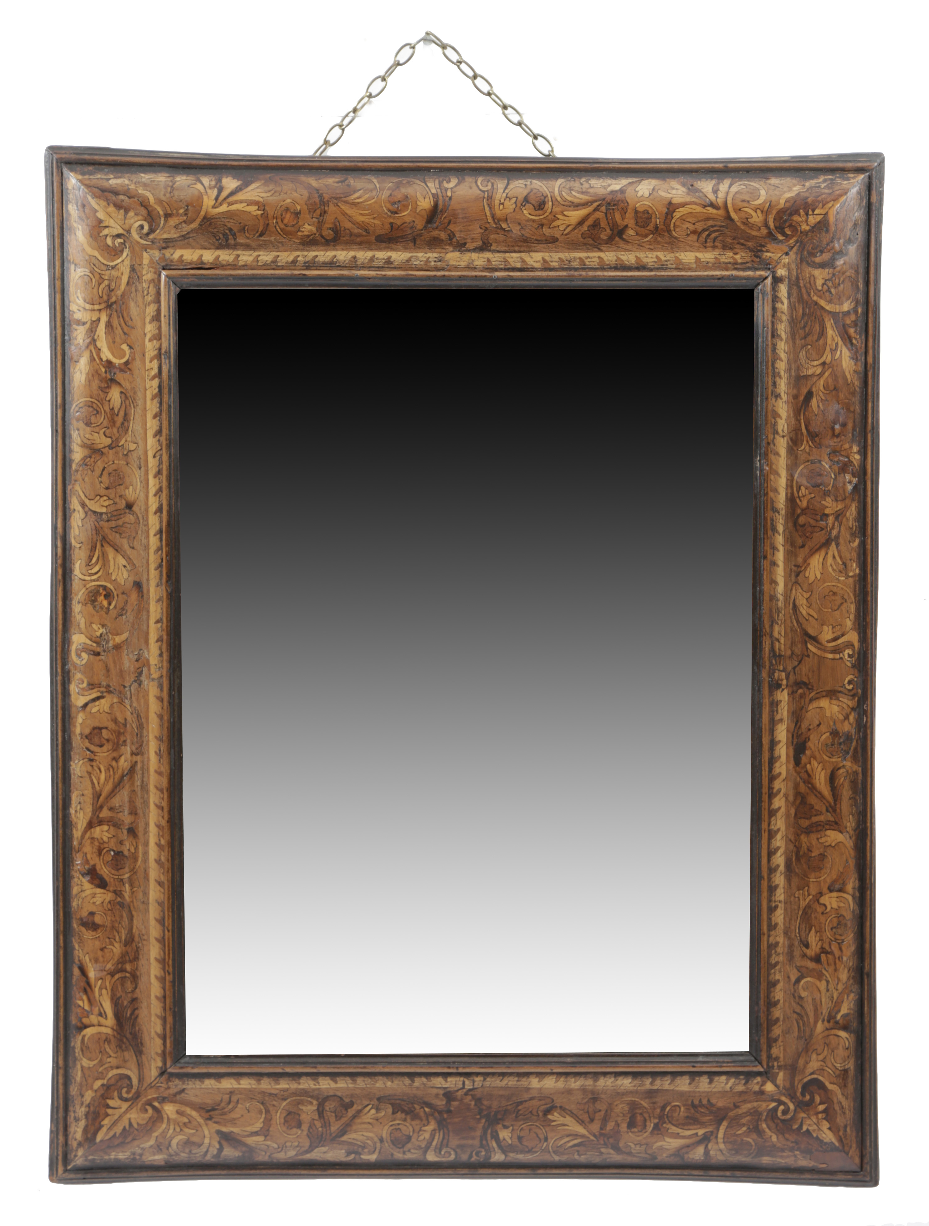A WILLIAM AND MARY WALNUT AND MARQUETRY CUSHION MIRROR