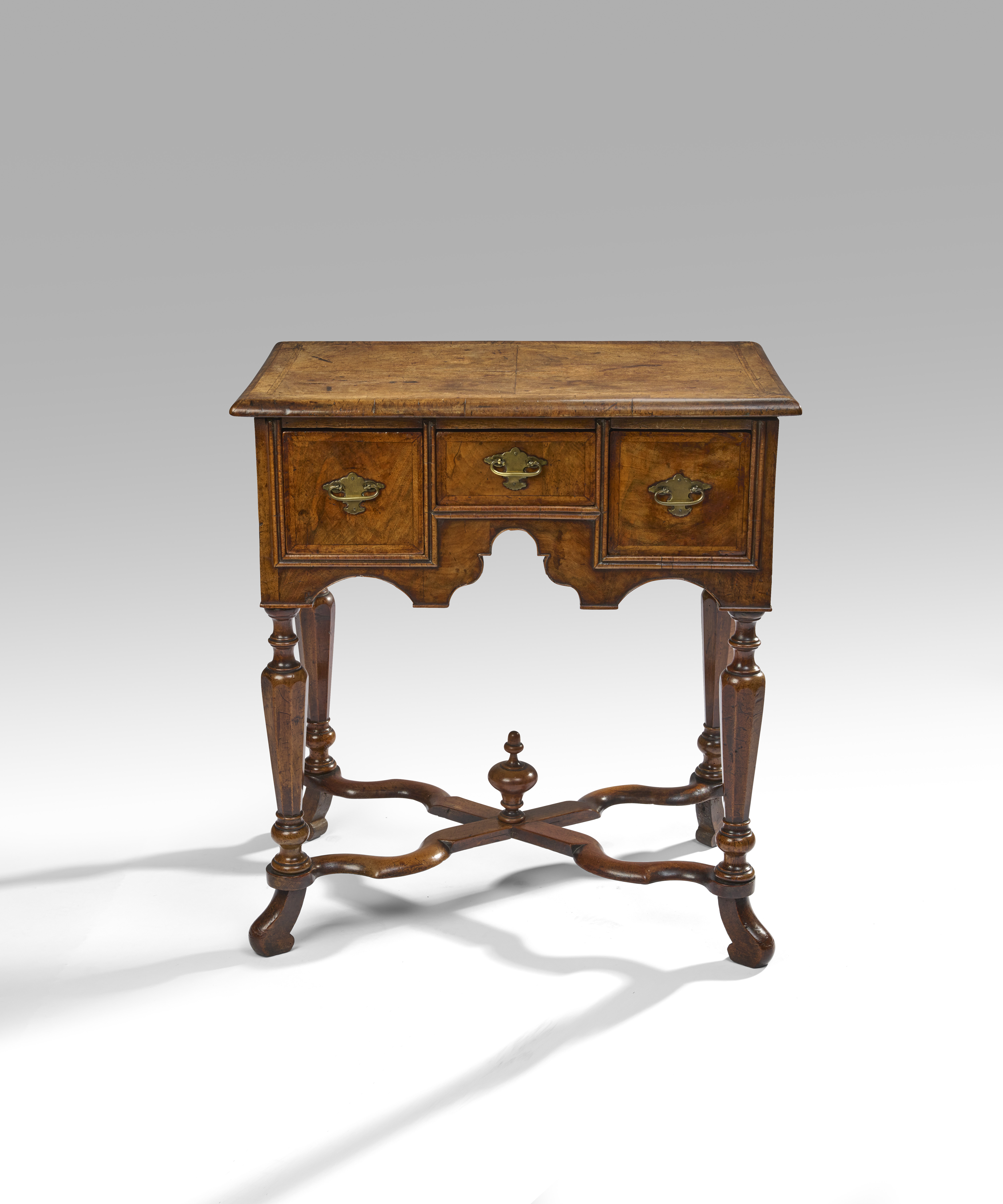 See Christie's, The Parry Collection, London, 24th April 1997, lot 260 and Christie's, The Property of the Late Mr and Mrs Melvyn Rollason, 3rd July 1997, lot 175 for a reading table and a lowboy of related forms. See also Adam Bowett, 'English Furniture 1660-1714 From Charles II to Queen Anne', p. 287, pl. 9:30 for the lowboy from the Rollason Collection, where referred to as a dressing table, and Ralph Edwards, 'The Dictionary of English Furniture', vol. 3, pl. 225, fig. 2 for a very similar table.