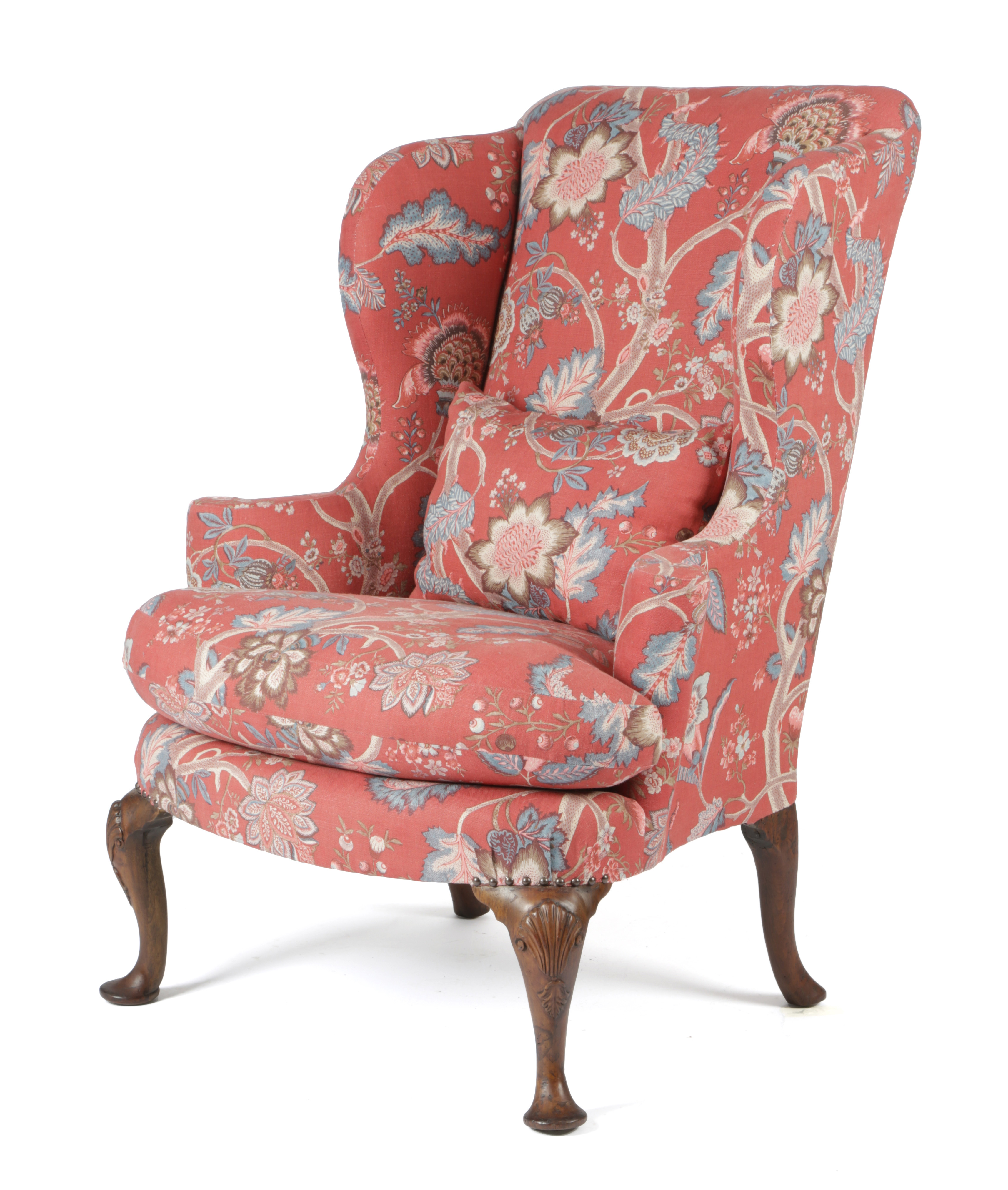 A GEORGE II WALNUT WING ARMCHAIR