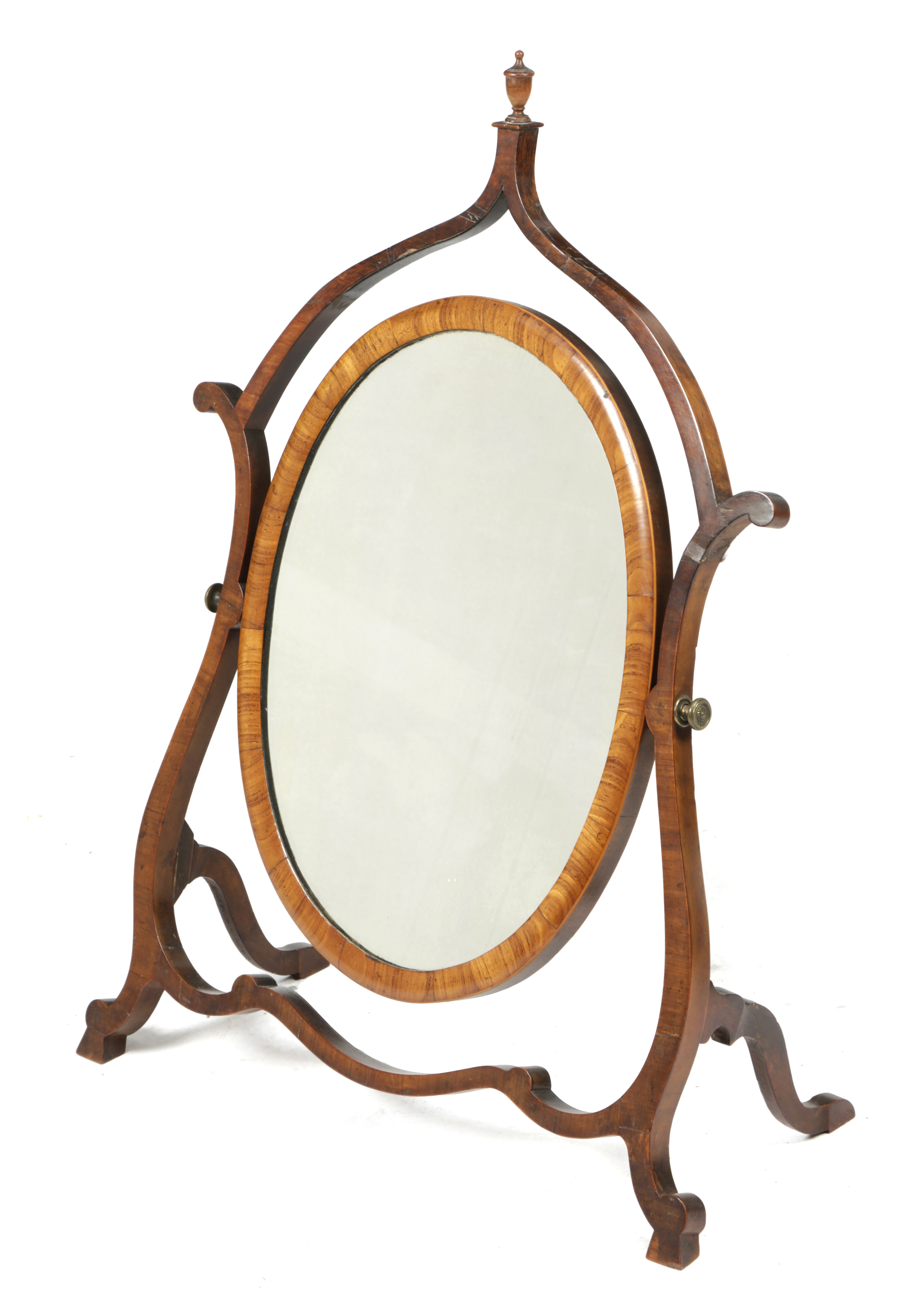 A GEORGE III MAHOGANY DRESSING TABLE MIRROR