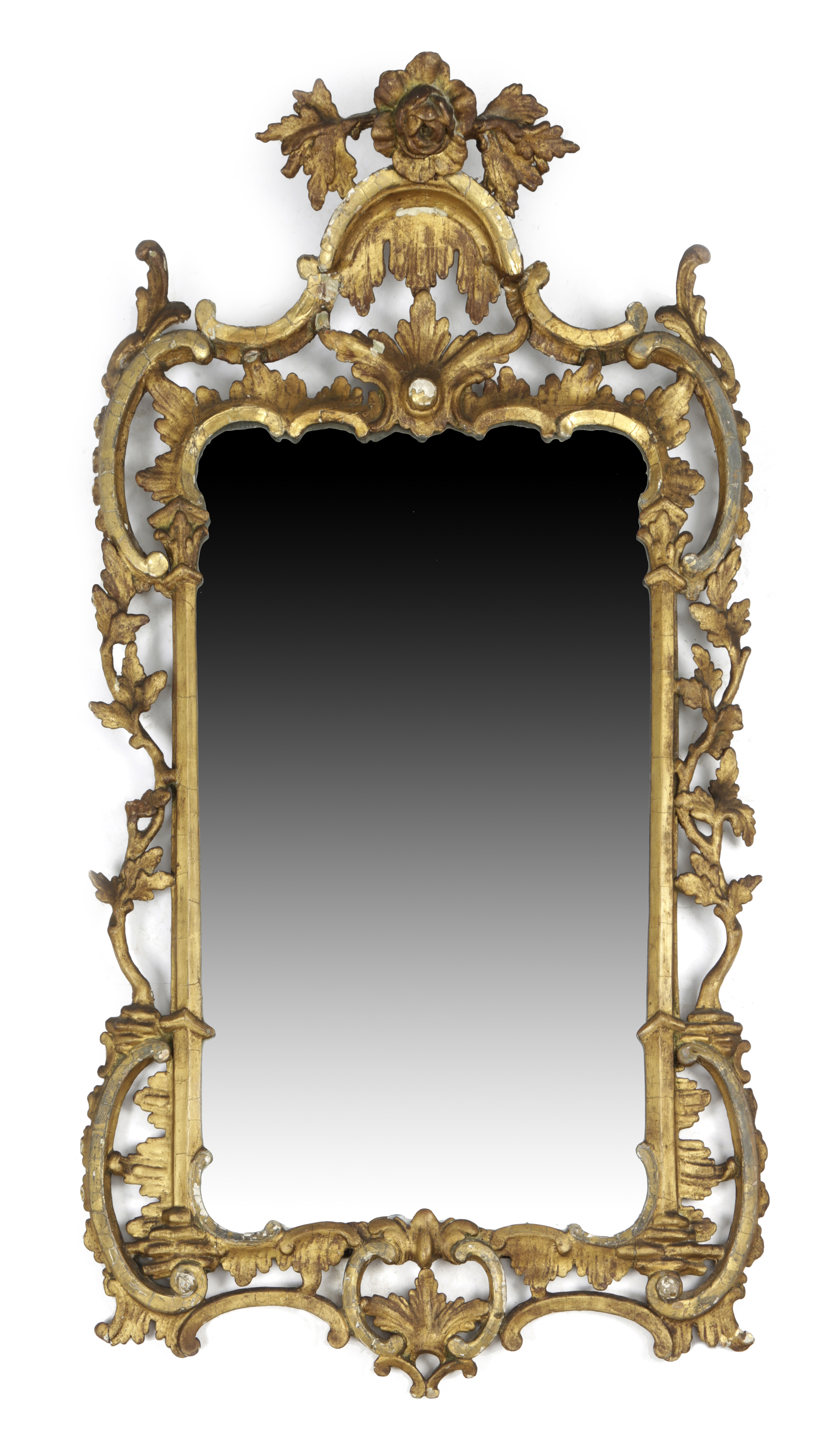the shaped plate inside a frame carved with 'C' scrolls, columns, oak leaf branches, rockwork and frosting