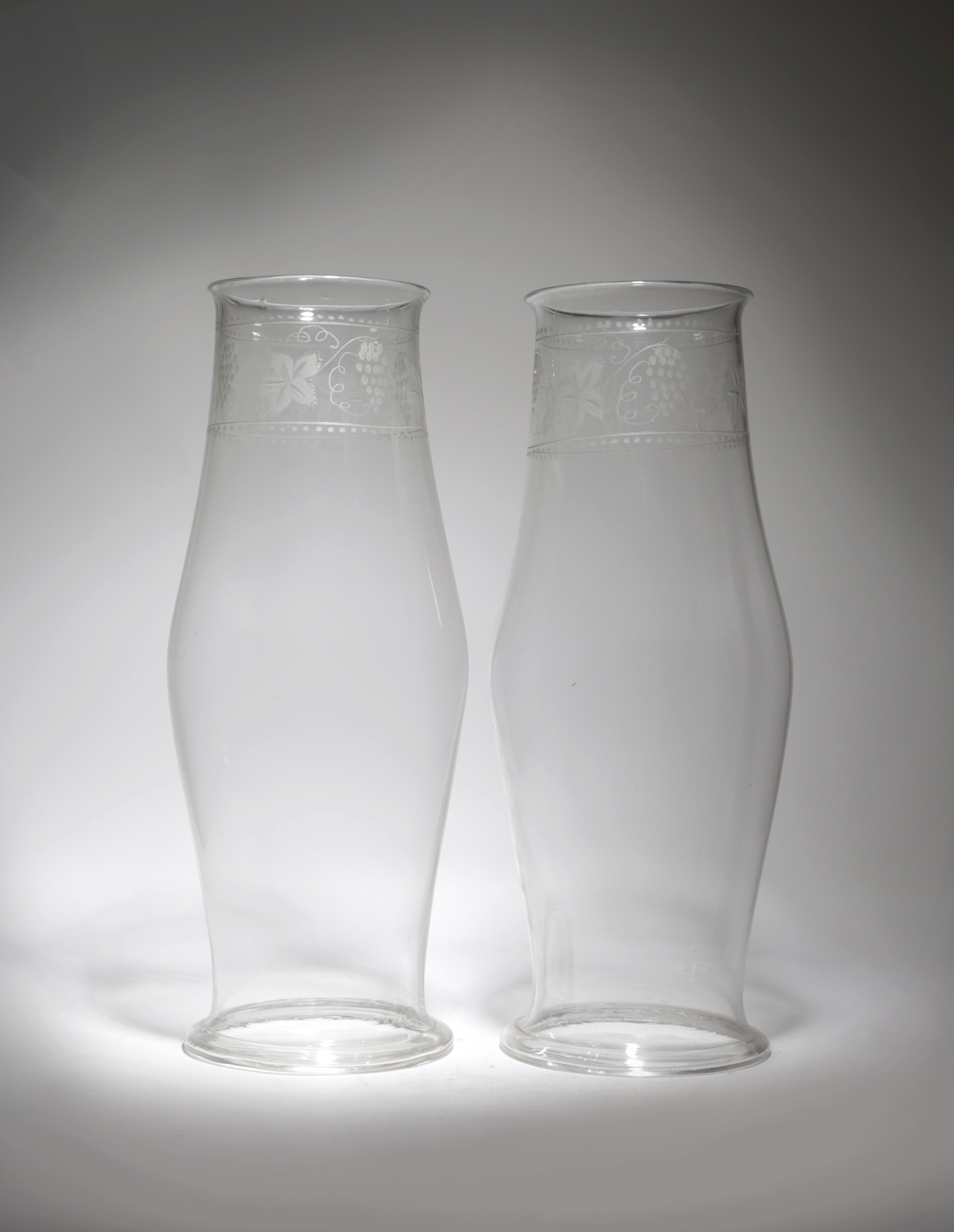 A PAIR OF VICTORIAN GLASS STORM OR HURRICANE LAMP SHADES