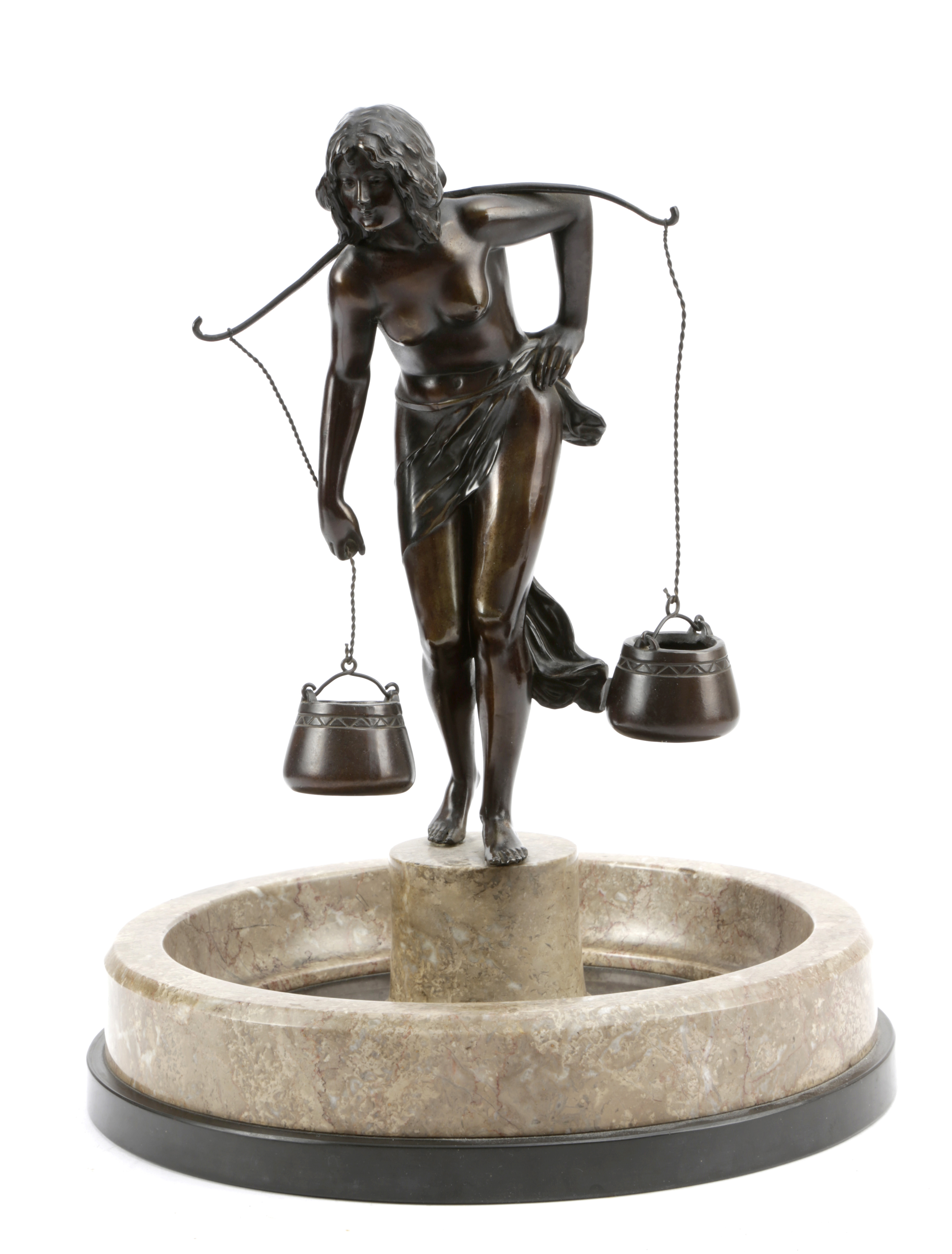 the scatily clad maiden carrying a pair of pails suspended from a yoke, on a circular marble base