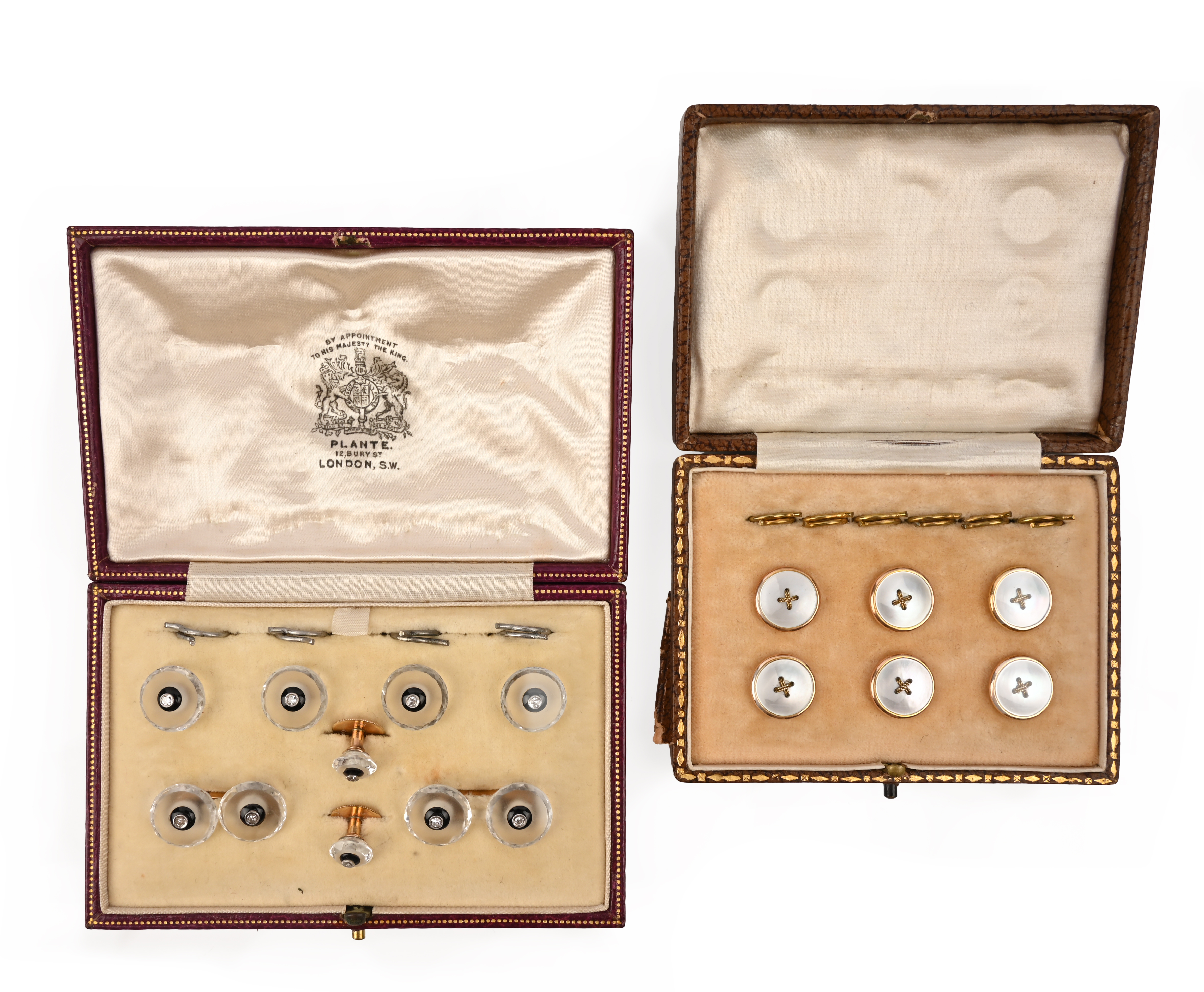 A cased dress set and six buttons