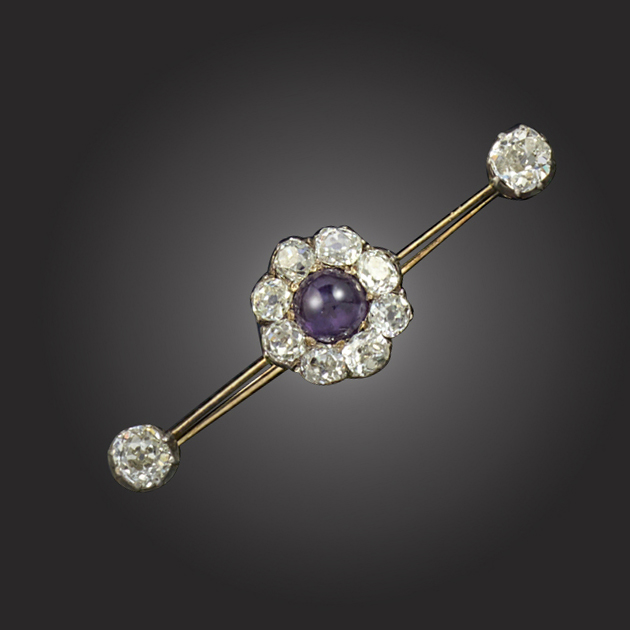 A late 19th century amethyst and diamond brooch