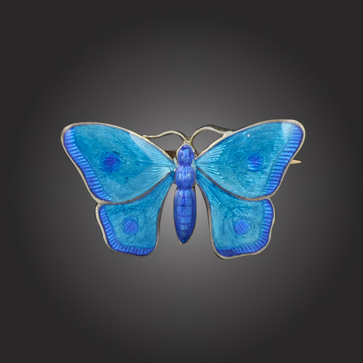 Child & Child, an enamel brooch, circa 1905, designed as a butterfly, applied with translucent blue basse-taille enamel, in silver, maker's mark for Child & Child, length 2.8cm, case