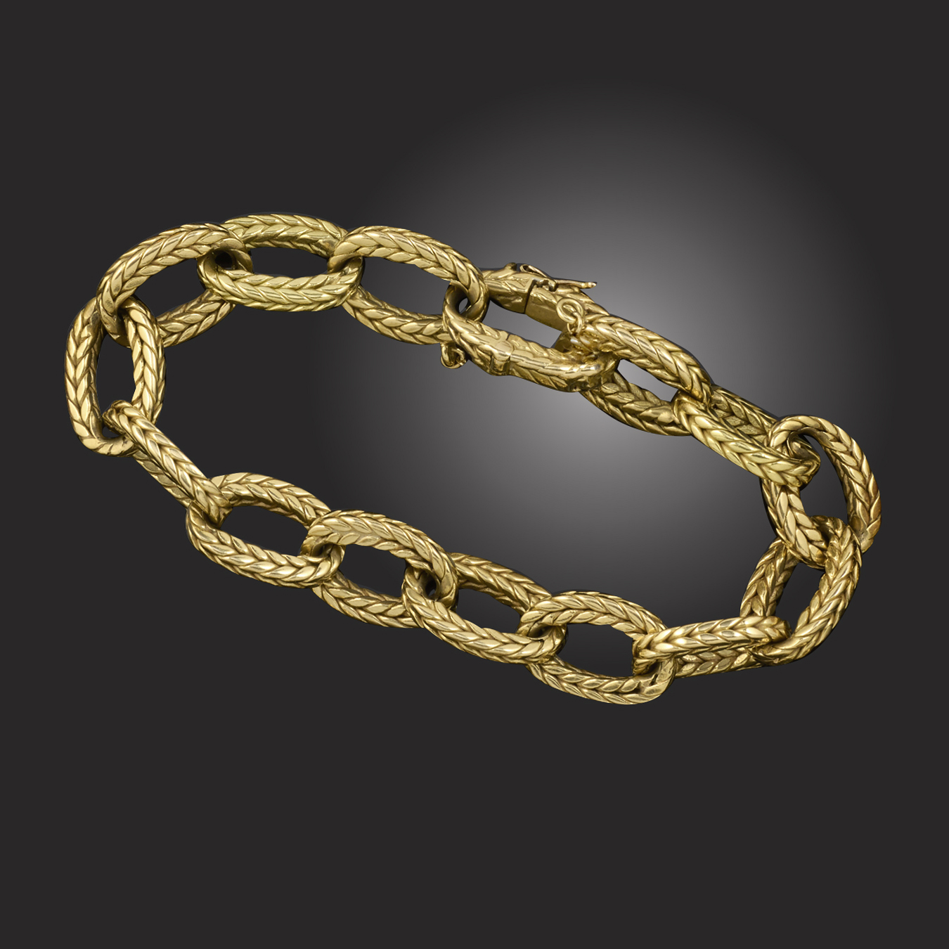 A gold oval-link bracelet, of rope-link design in yellow gold, length 21.5cm, with three spare links, total weight 80g