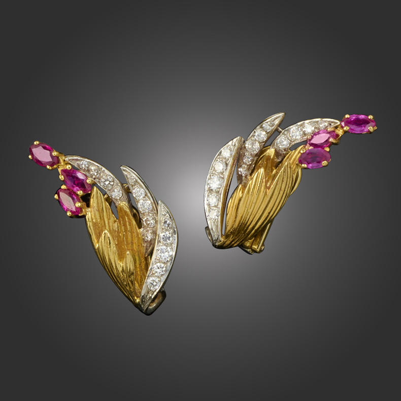 Kutchinsky, a pair of ruby, diamond and 18ct gold earclips, circa 1963
