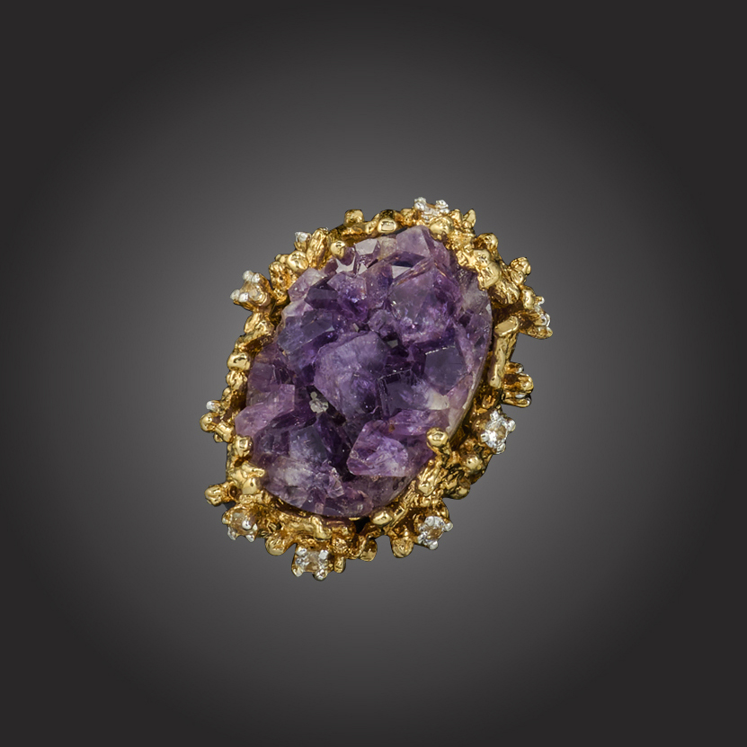 An amethyst-set dress ring, the rough amethysts within gold coloured setting, size P 1/2