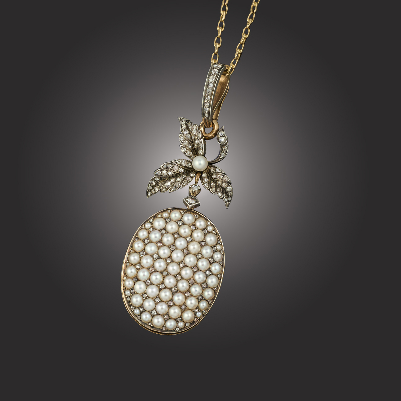 A Victorian diamond and seed pearl pendant, late 19th century composite