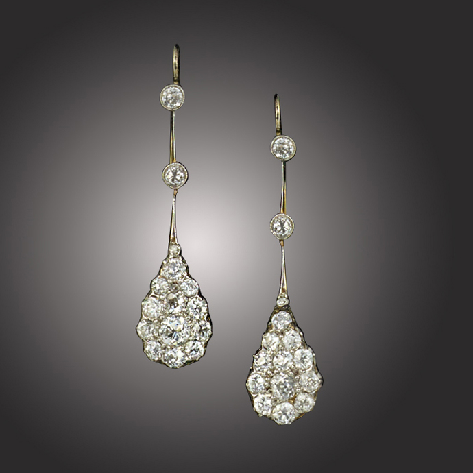 A pair of early 20th century diamond earrings, the pendants set with graduated old circular-cut diamonds, suspended from diamond-set articulated knife-edge links, mounted in platinum and gold, hook fittings, length 3.8cm