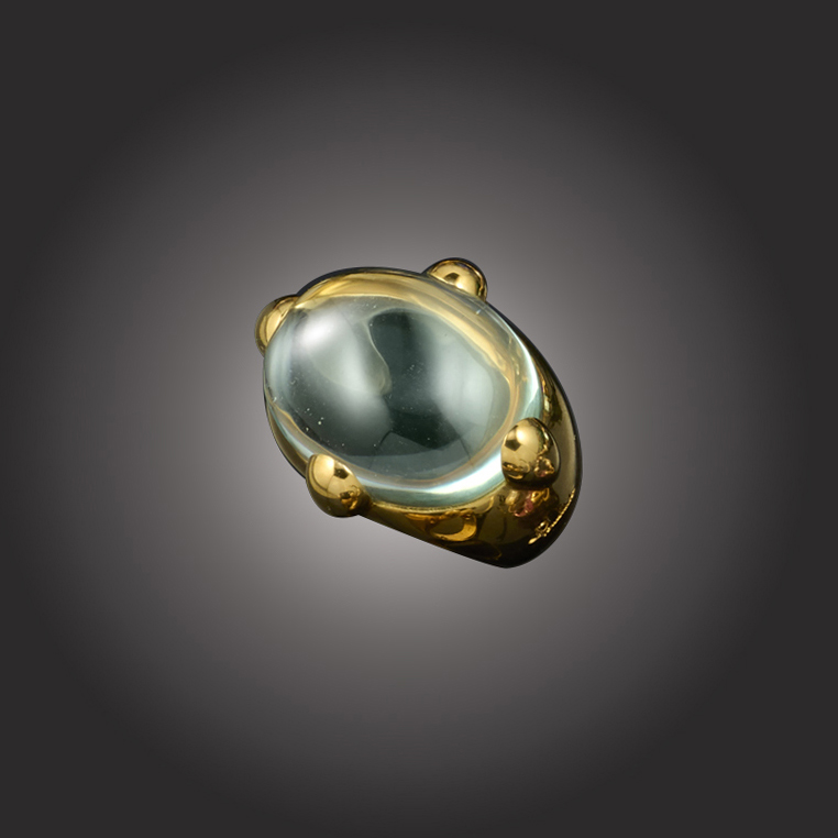 Pomellato, an aquamarine 'Griffe' ring, of bombé design, the oval aquamarine cabochon set with broad claws to wide shoulders, mounted in yellow gold, signed Pomellato, Italian control mark, stamped 750, size M 1/2