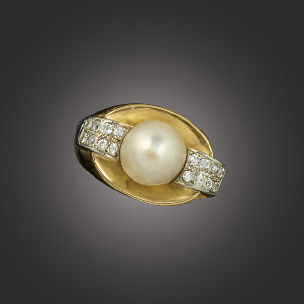 A natural pearl and diamond ring