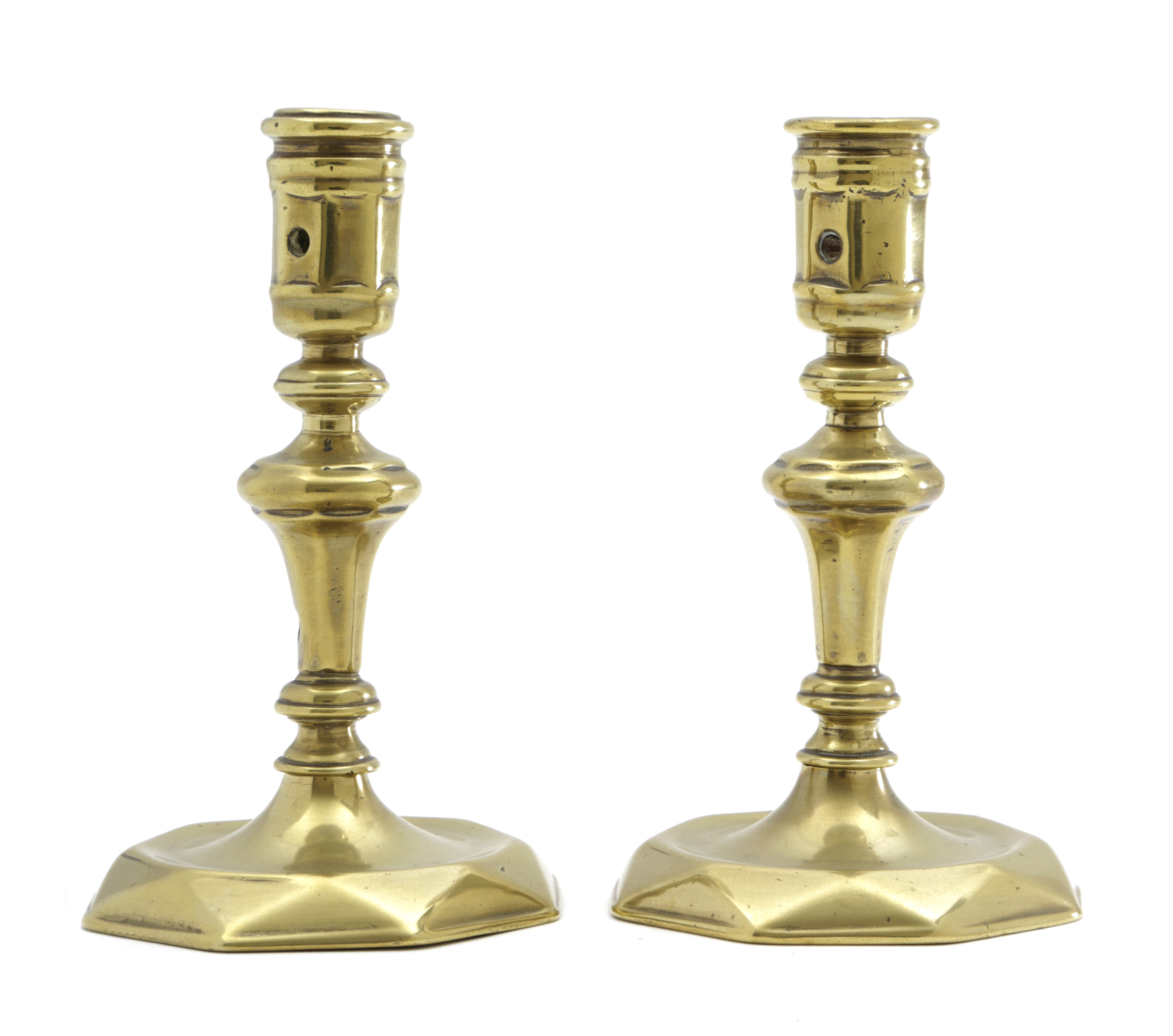 A PAIR OF NORTH EUROPEAN BRASS CANDLESTICKS