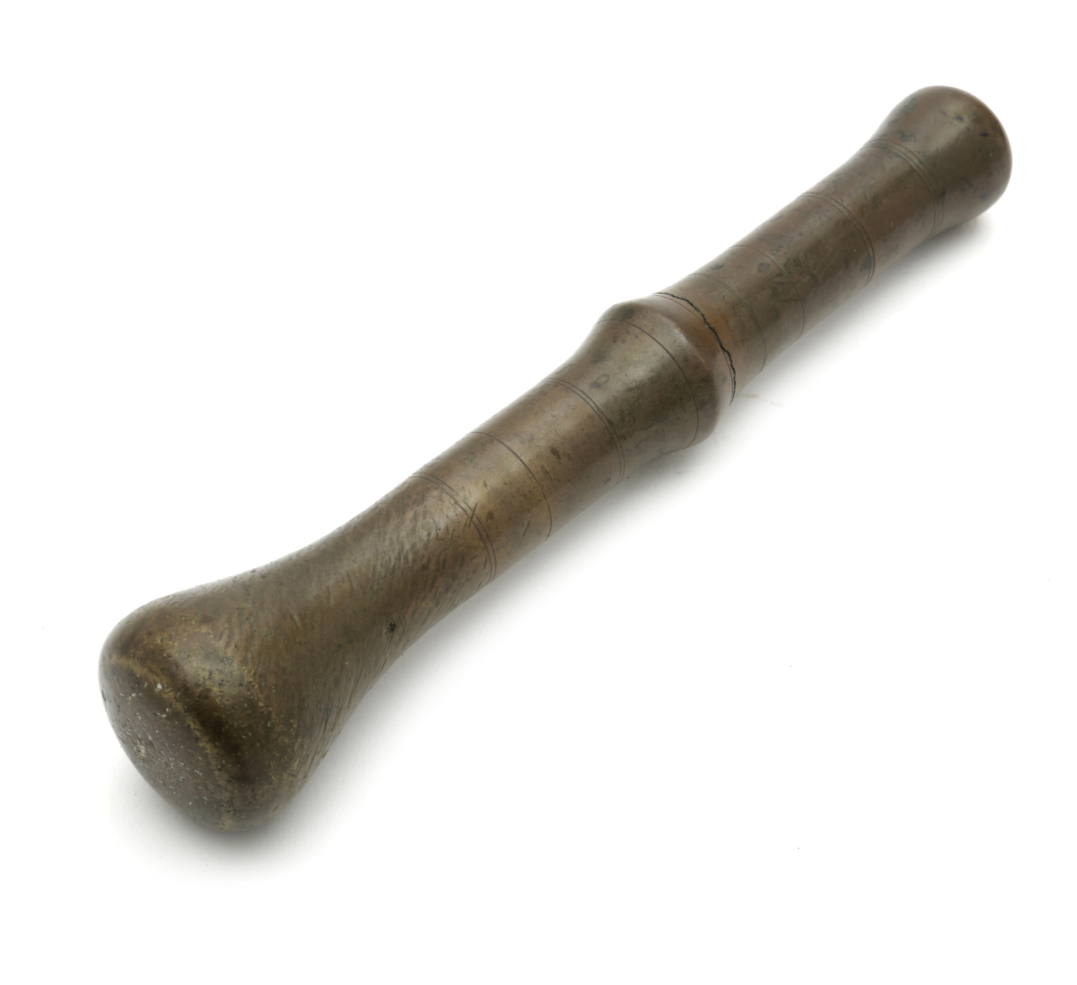 A 17TH CENTURY HEAVY BRONZE PESTLE