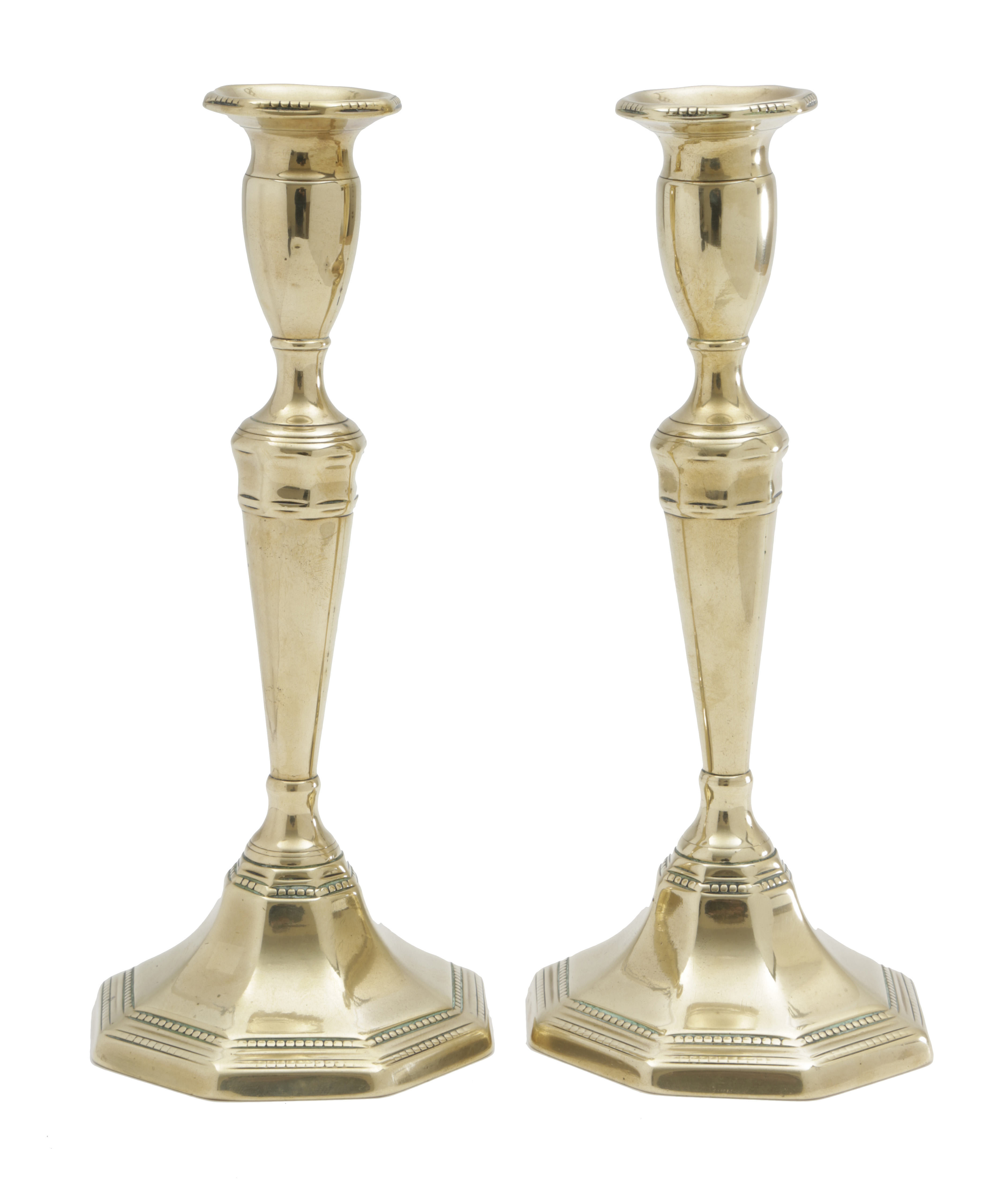 A PAIR OF GEORGE III BRASS CANDLESTICKS
