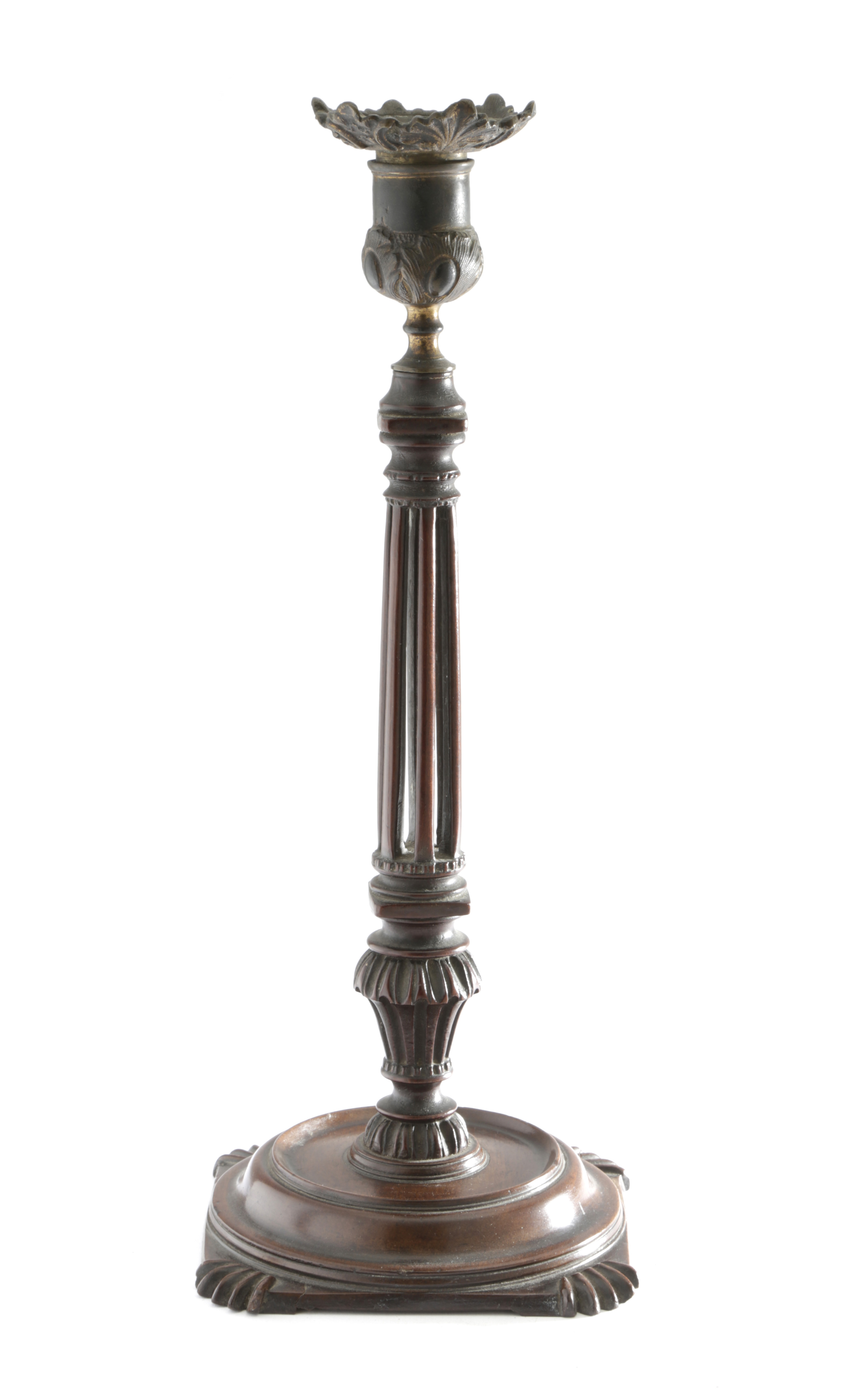A FINE GEORGE III MAHOGANY AND BRASS CANDLESTICK