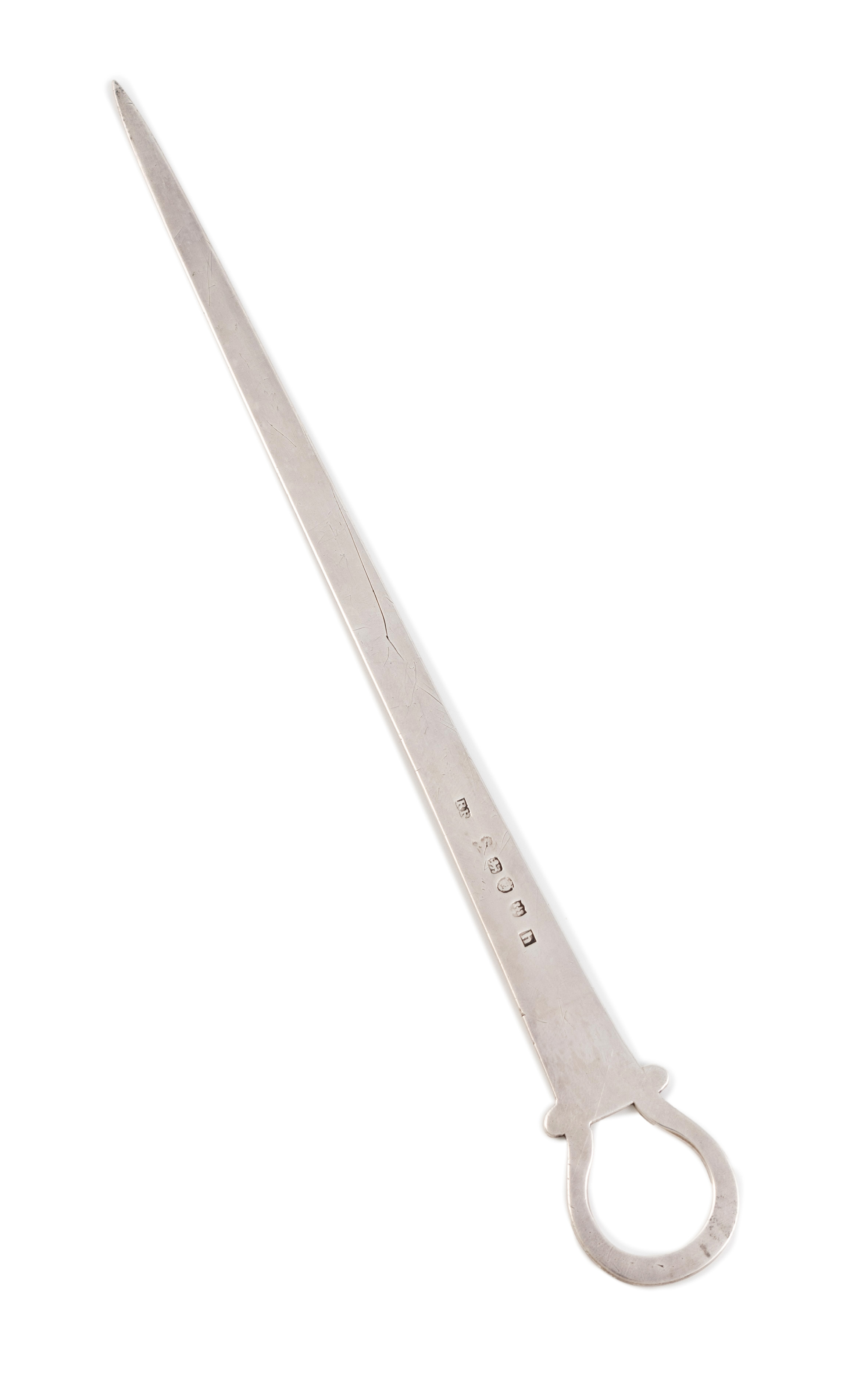 tapering form with a plain ring handle, length 23.2cm, approx. weight 1.2oz.