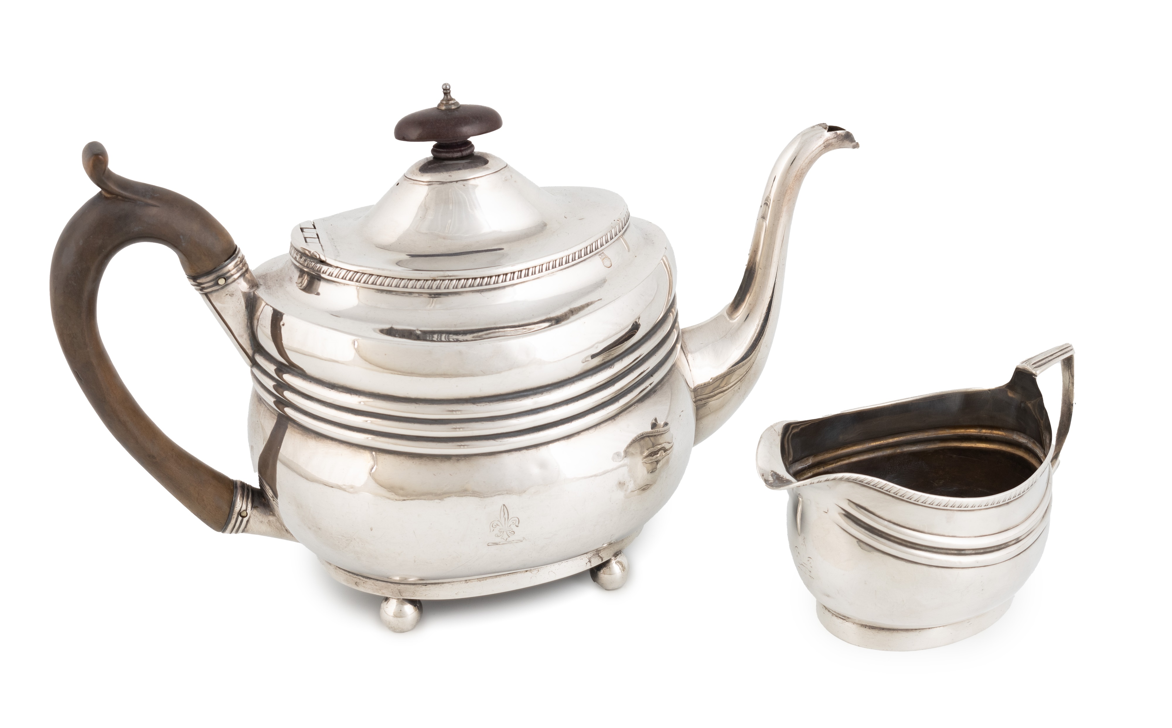 A George III silver teapot and cream jug,