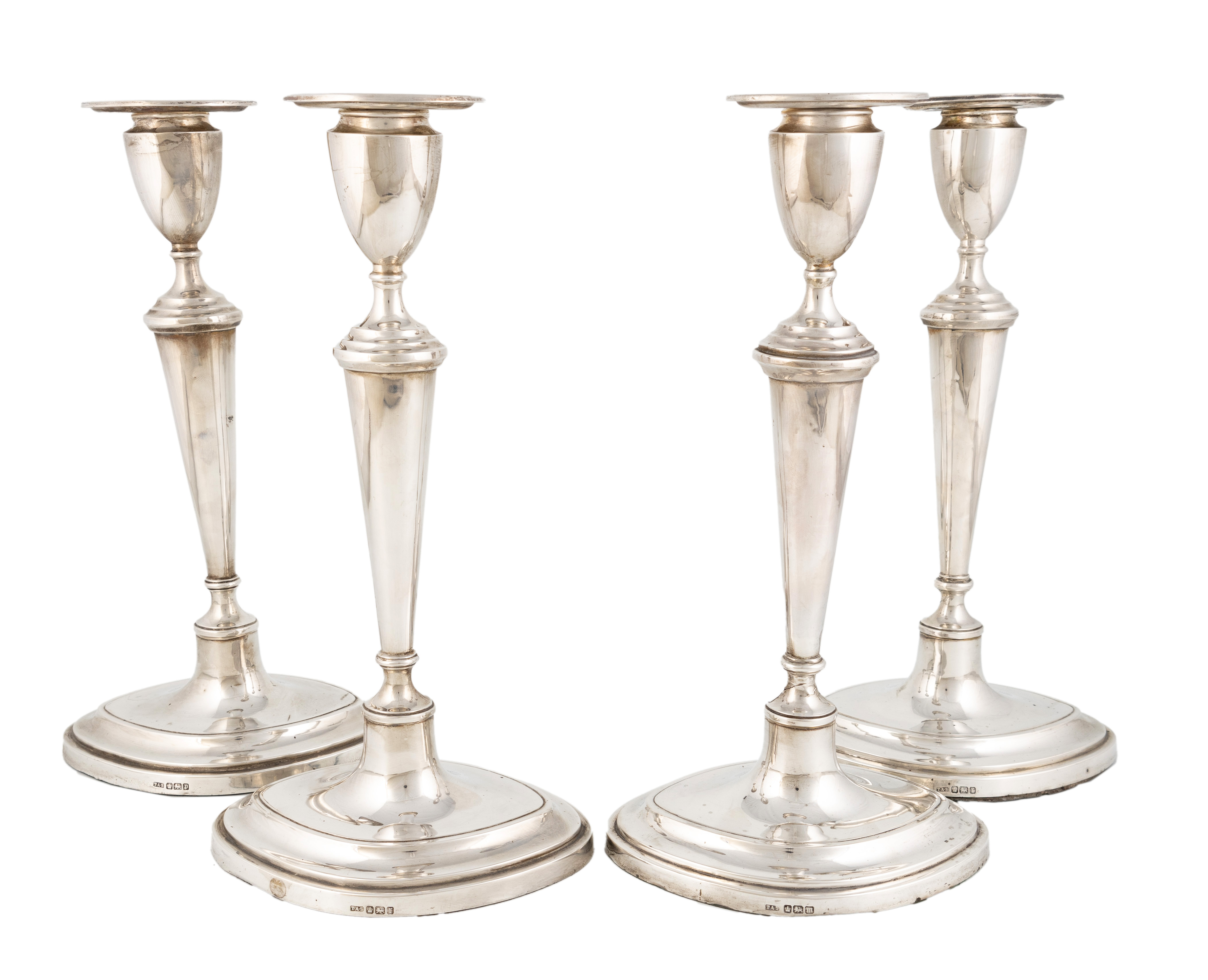 A matched set of four Edwardian silver candlesticks,