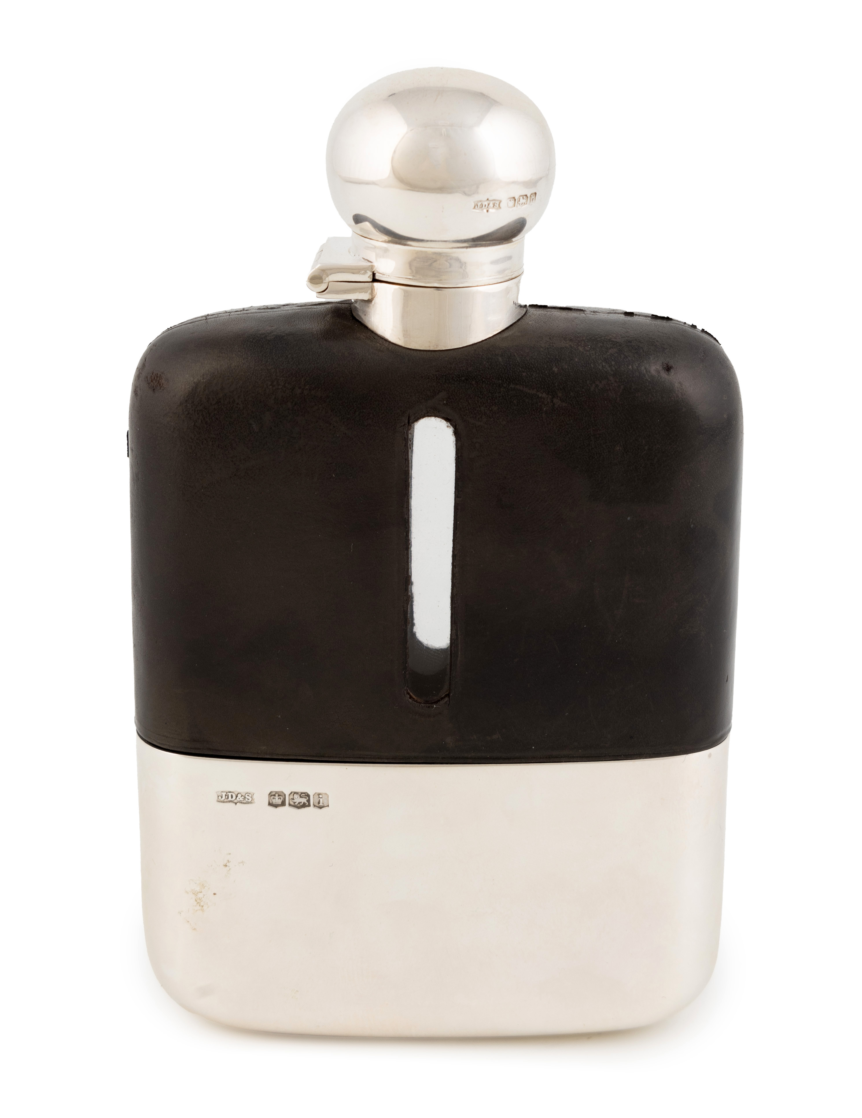 A silver-mounted glass hip flask,
