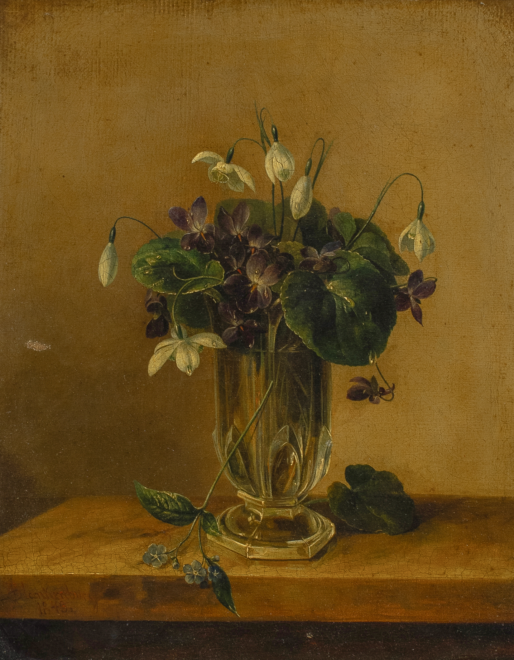 A Glass Vase of Snowdrops and Violets