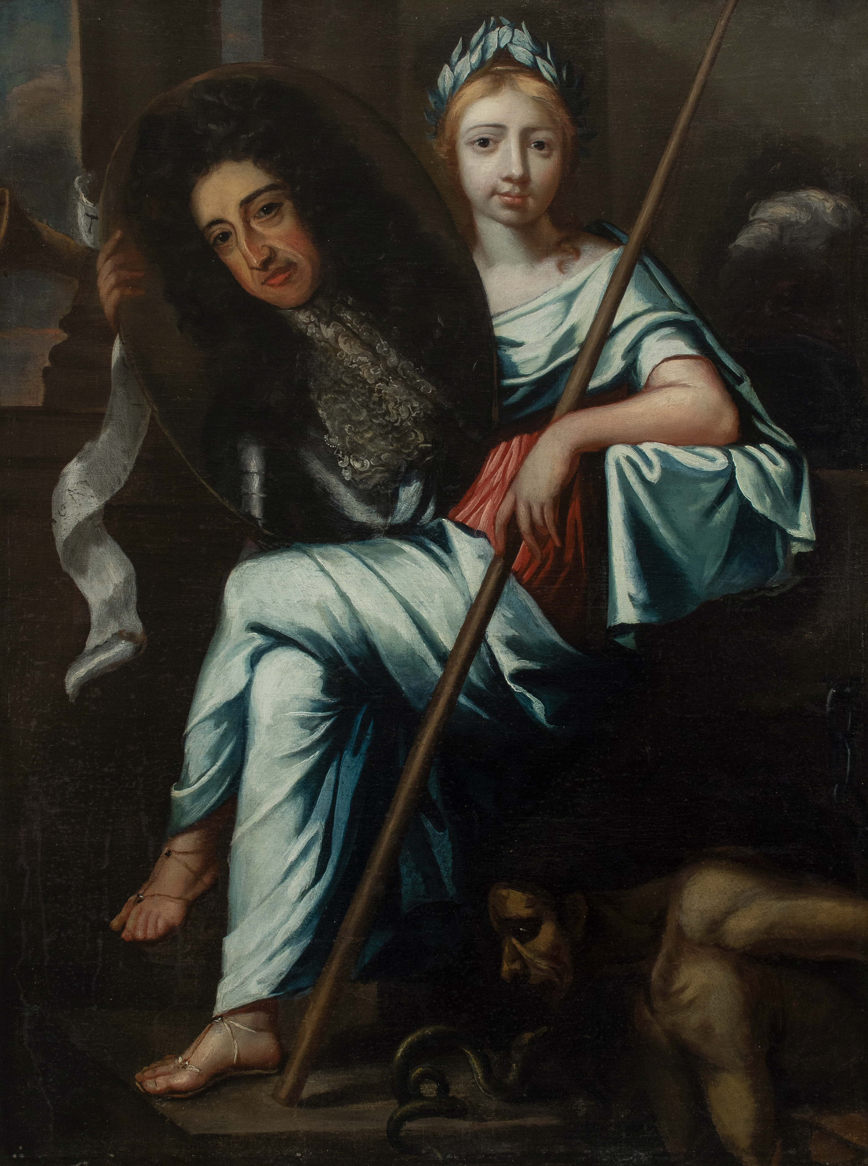 Portrait of a lady as Minerva holding a portrait of Charles II