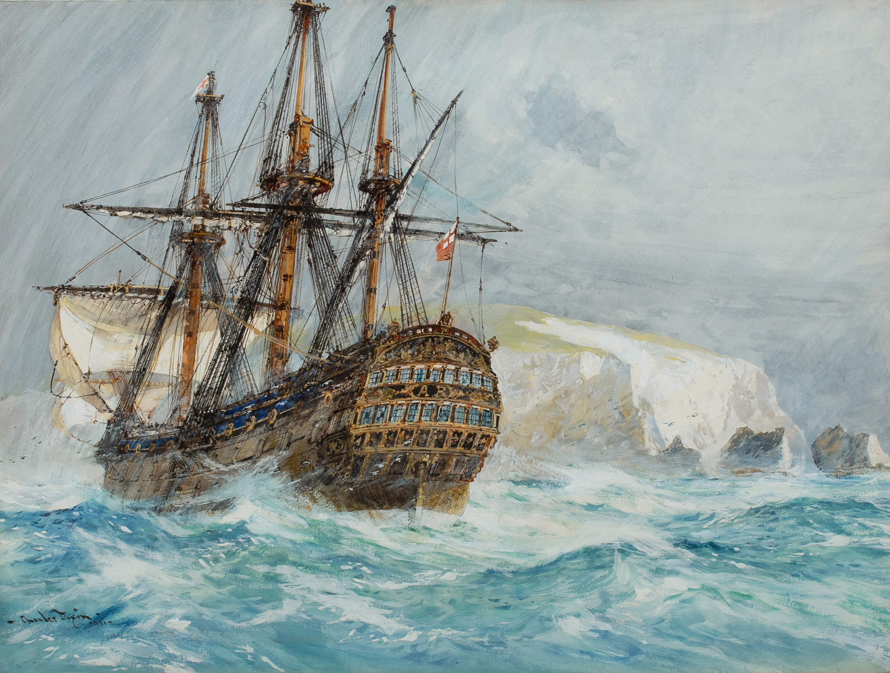 The Royal Katherine passing the Needles when homeward bound in heavy weather