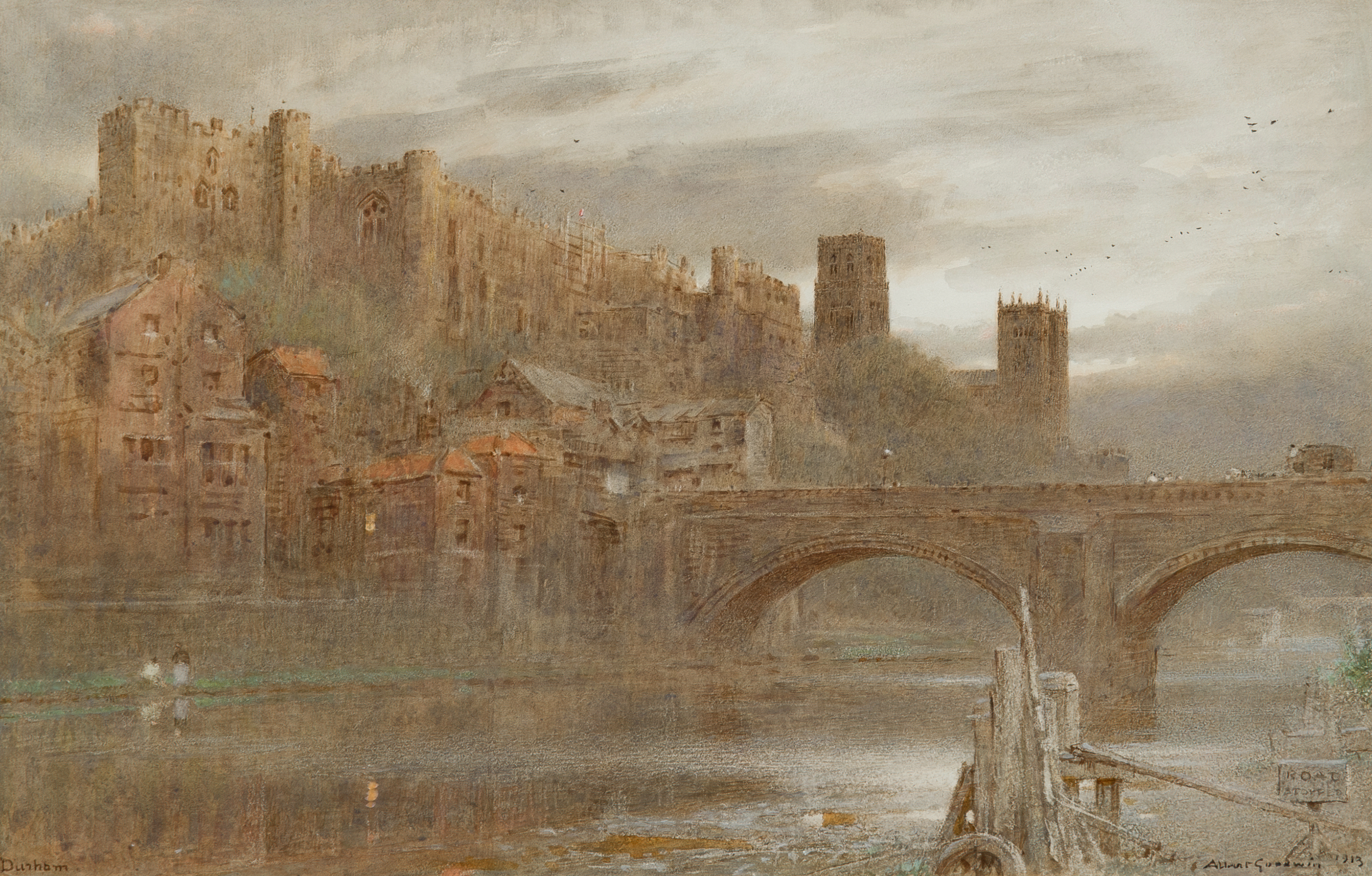 Signed and dated Albert Goodwin 1913 (lower right), inscribed Durham (lower left), and further signed and inscribed with title (to label)