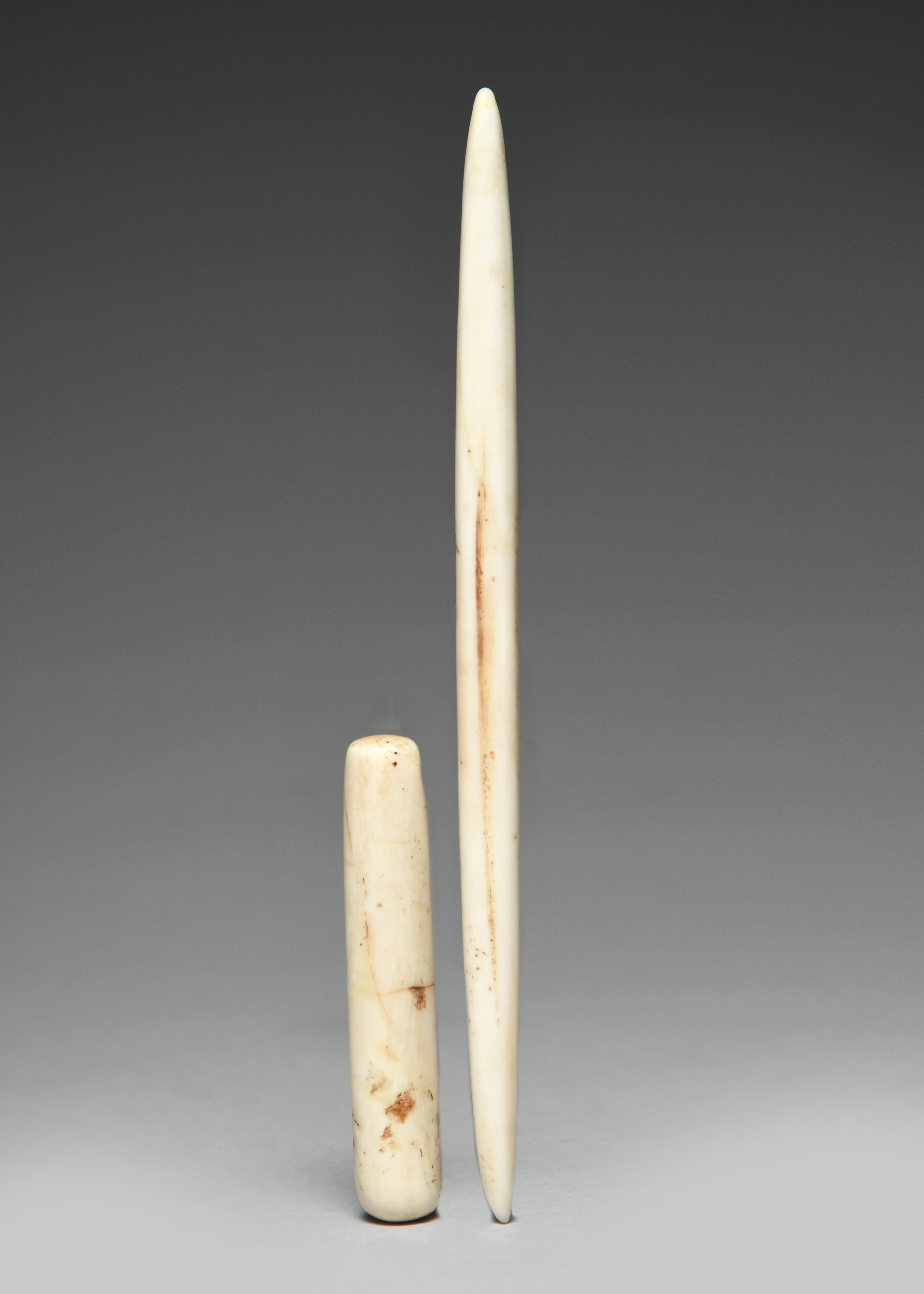 and a Papua New Guinea clam shell ear ornament, 8.1cm long. (2)