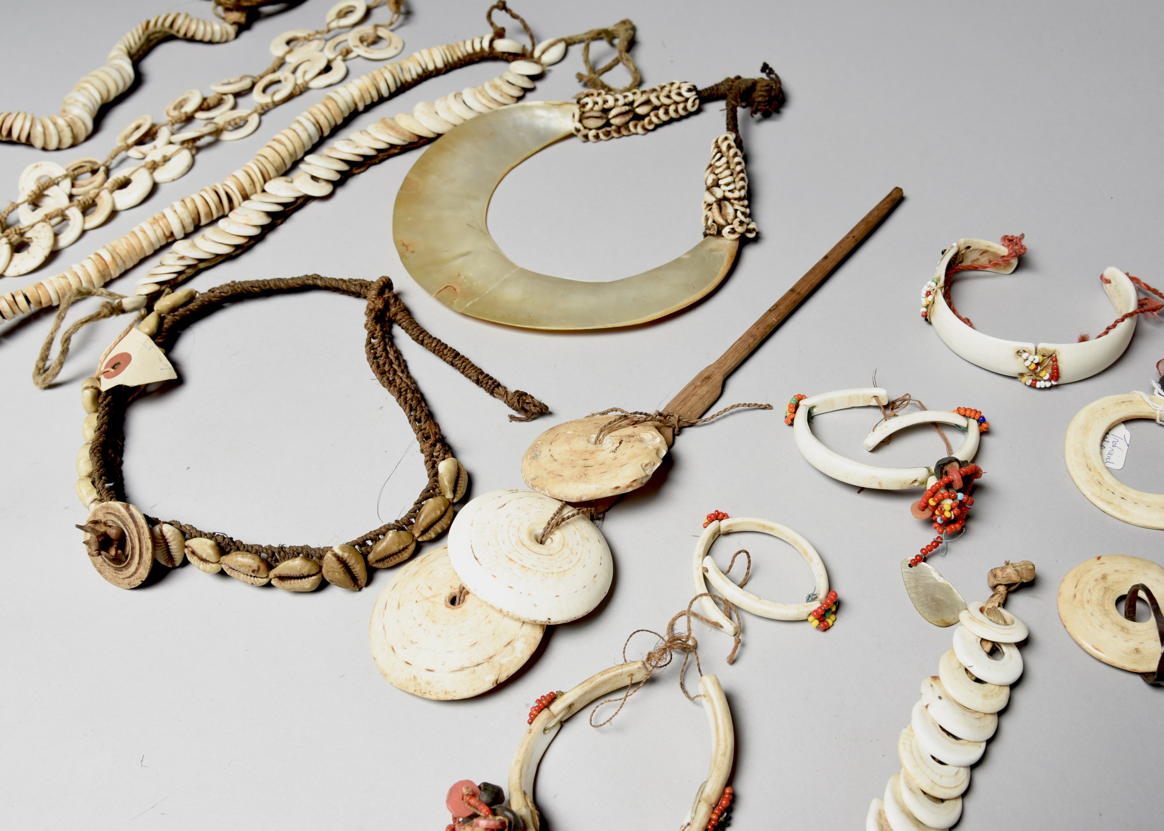 λA collection of Papua New Guinea shell necklaces and bracelets