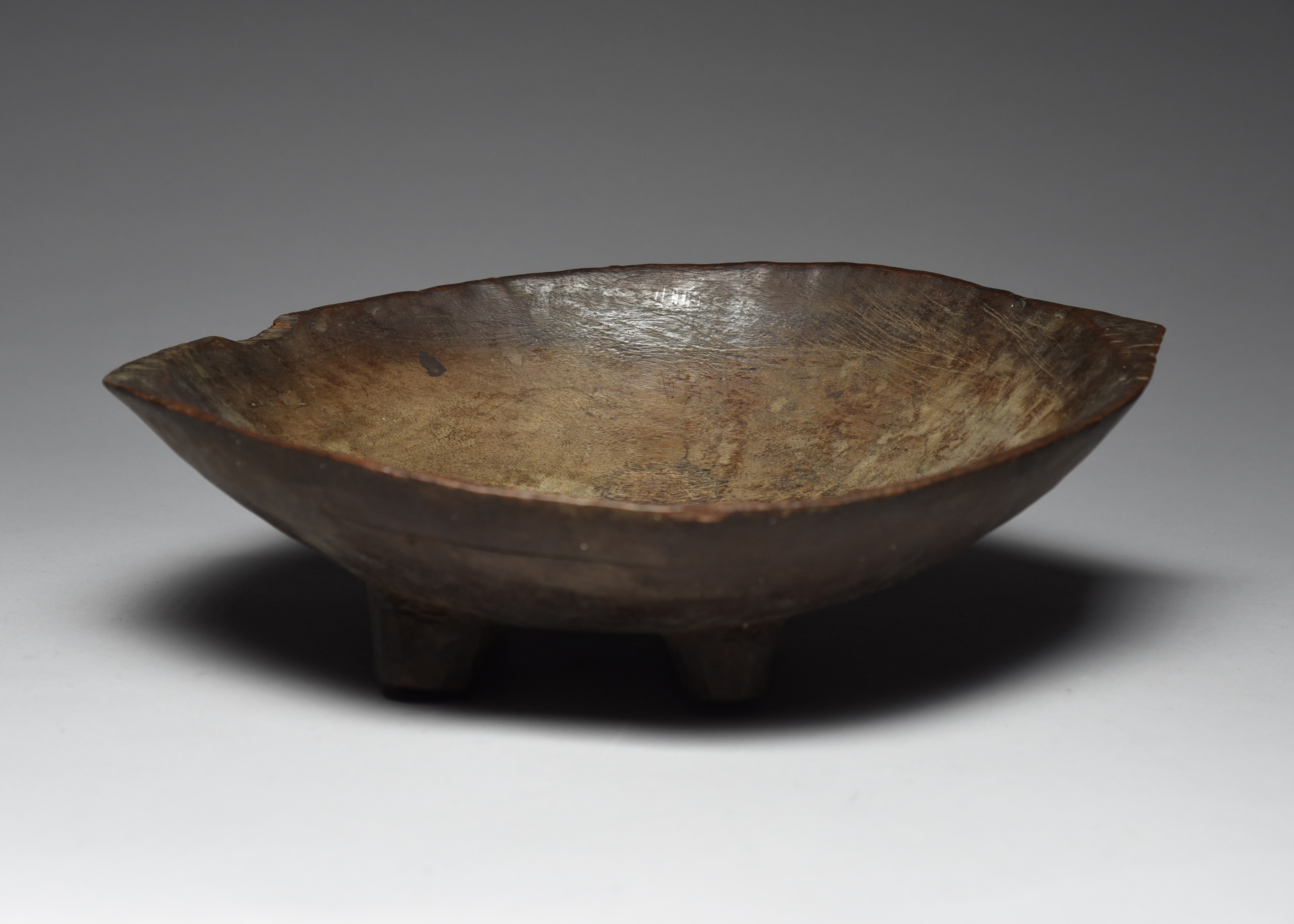 of elliptical form, raised on four faceted feet with a ribbed lug pierced for attachment,