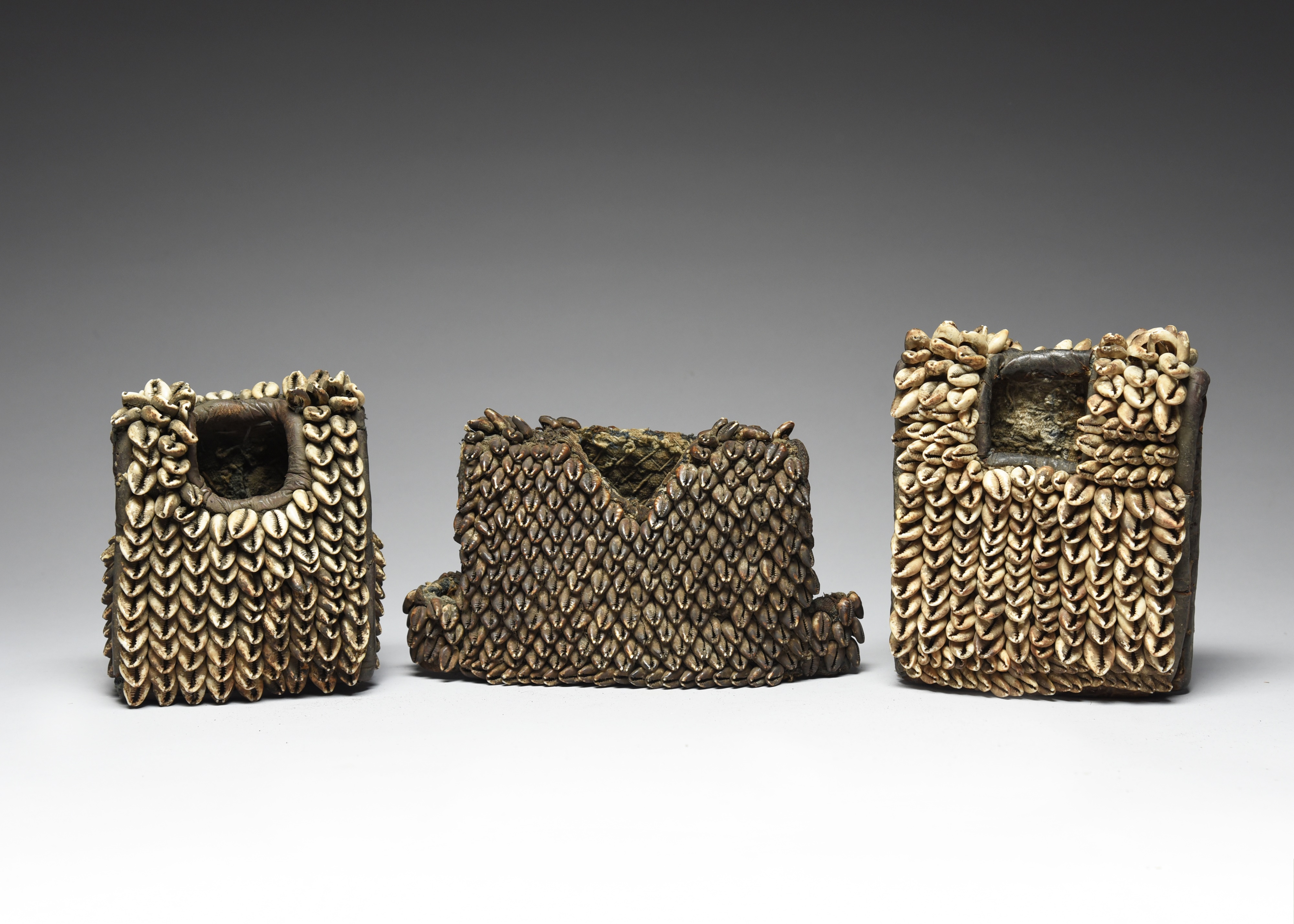 canvas, cloth, leather and cowrie shells,