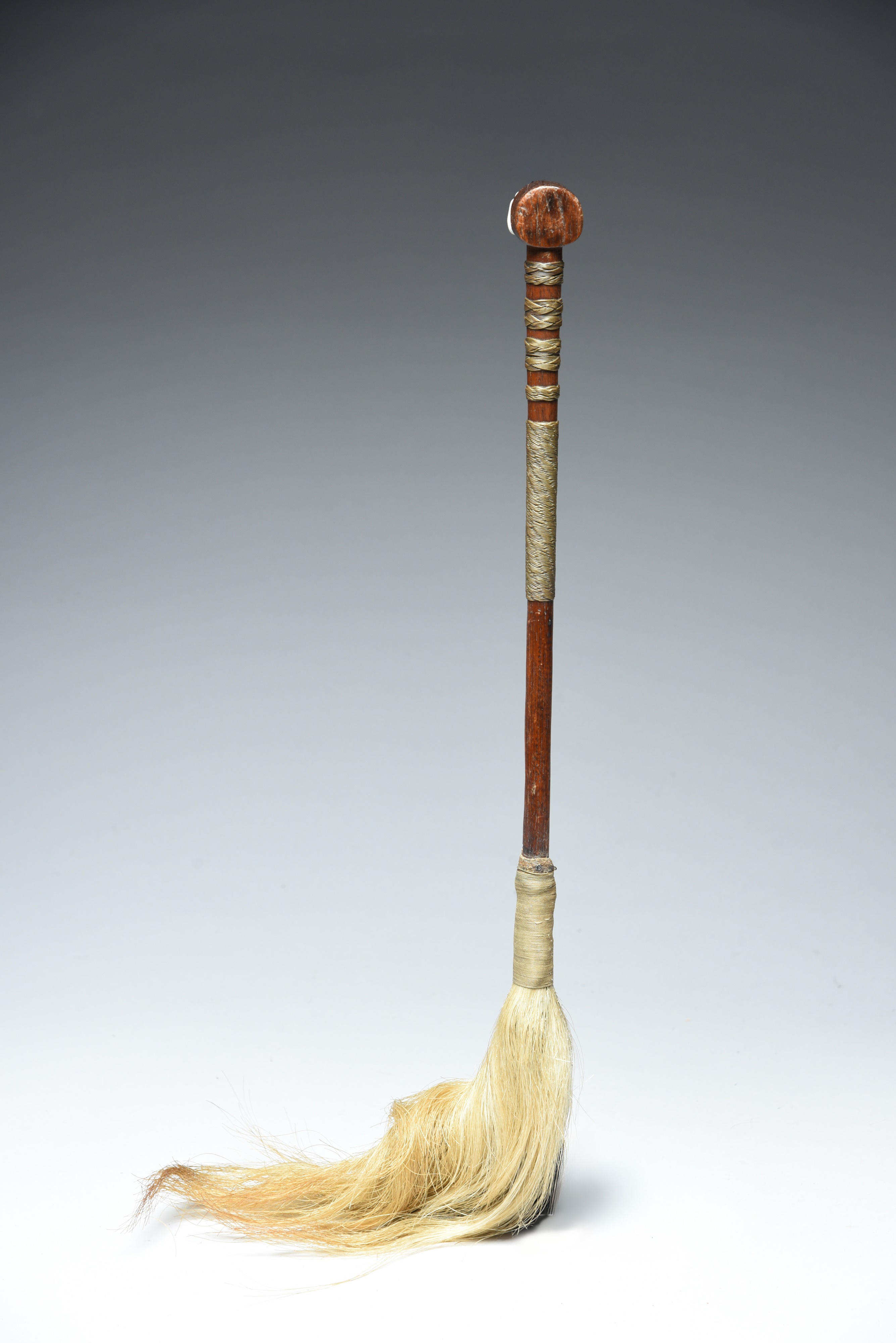 the brass wirework bound handle with a disc terminal and fibre bound hair whisk,