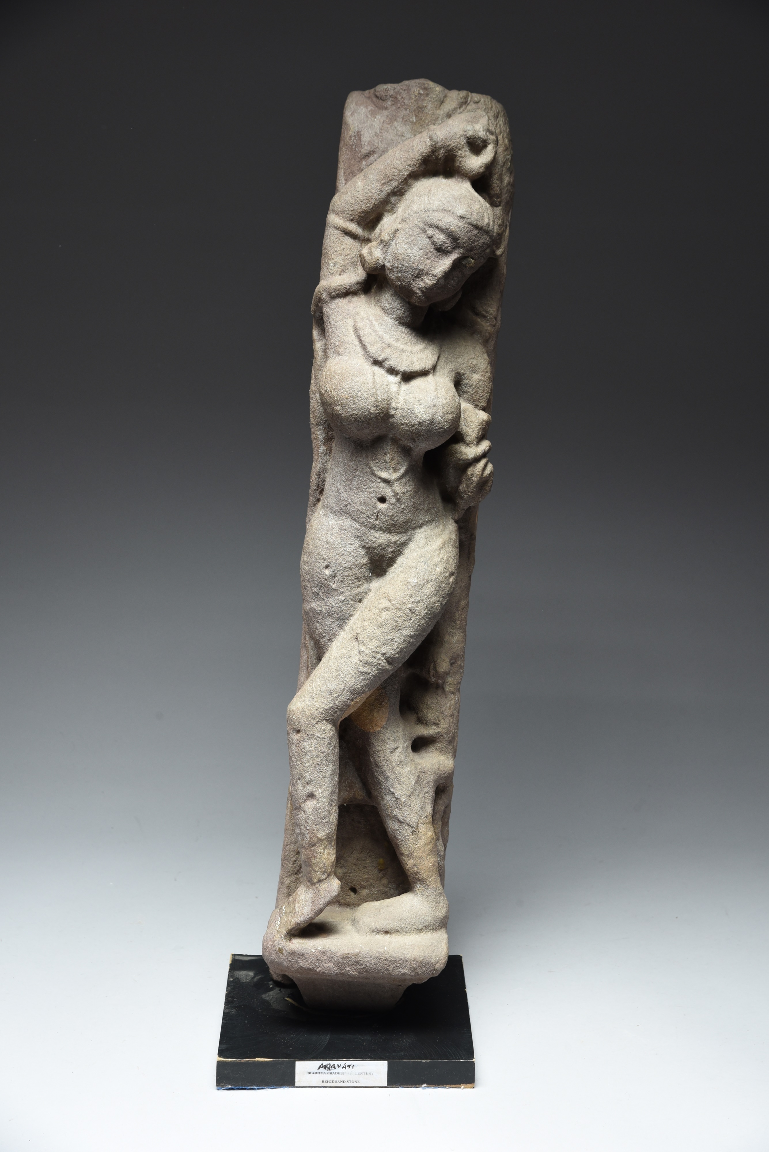 An Indian red sandstone figure of a Yakshi