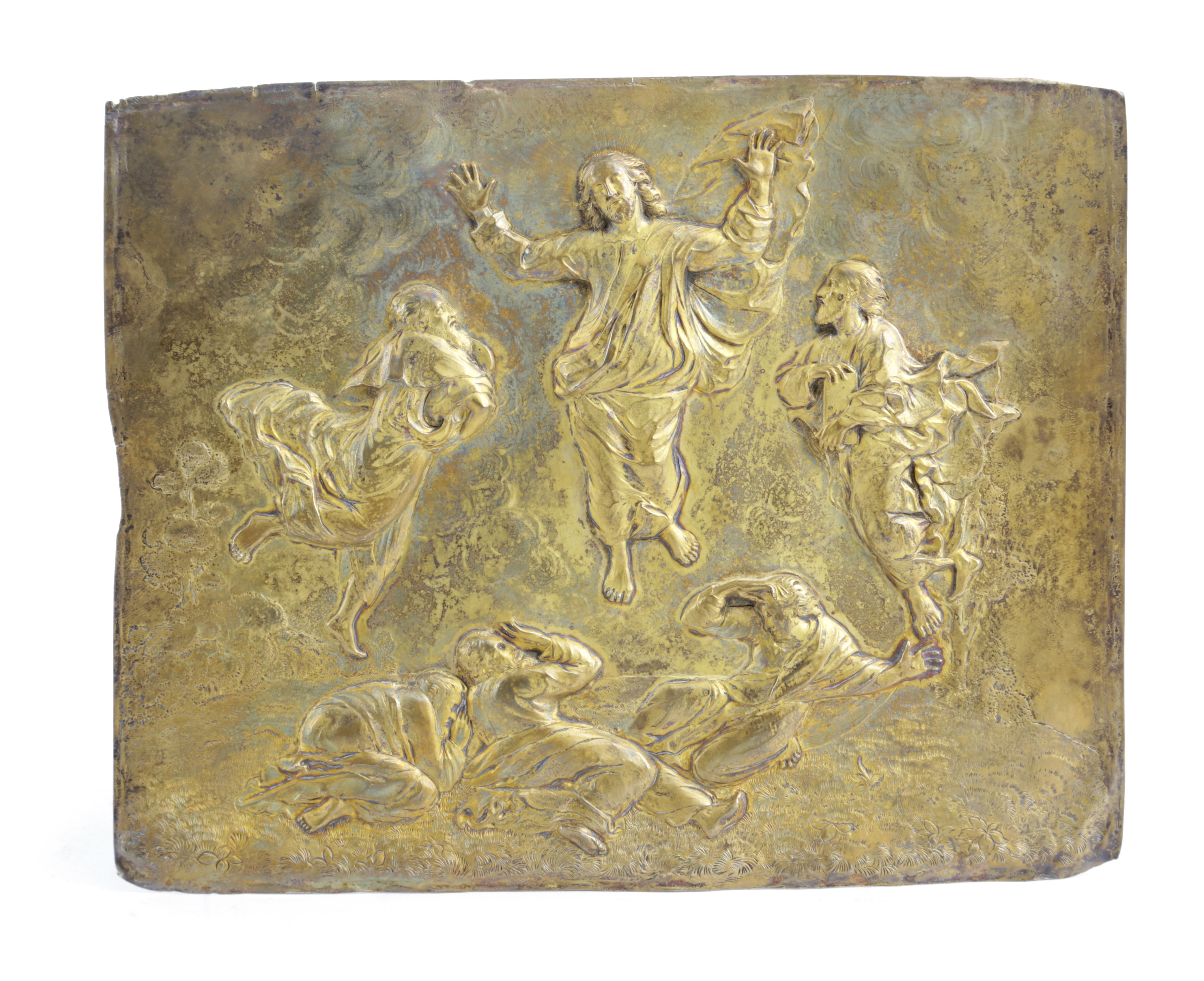 A CONTINENTAL GILT COPPER RELIEF PLAQUE