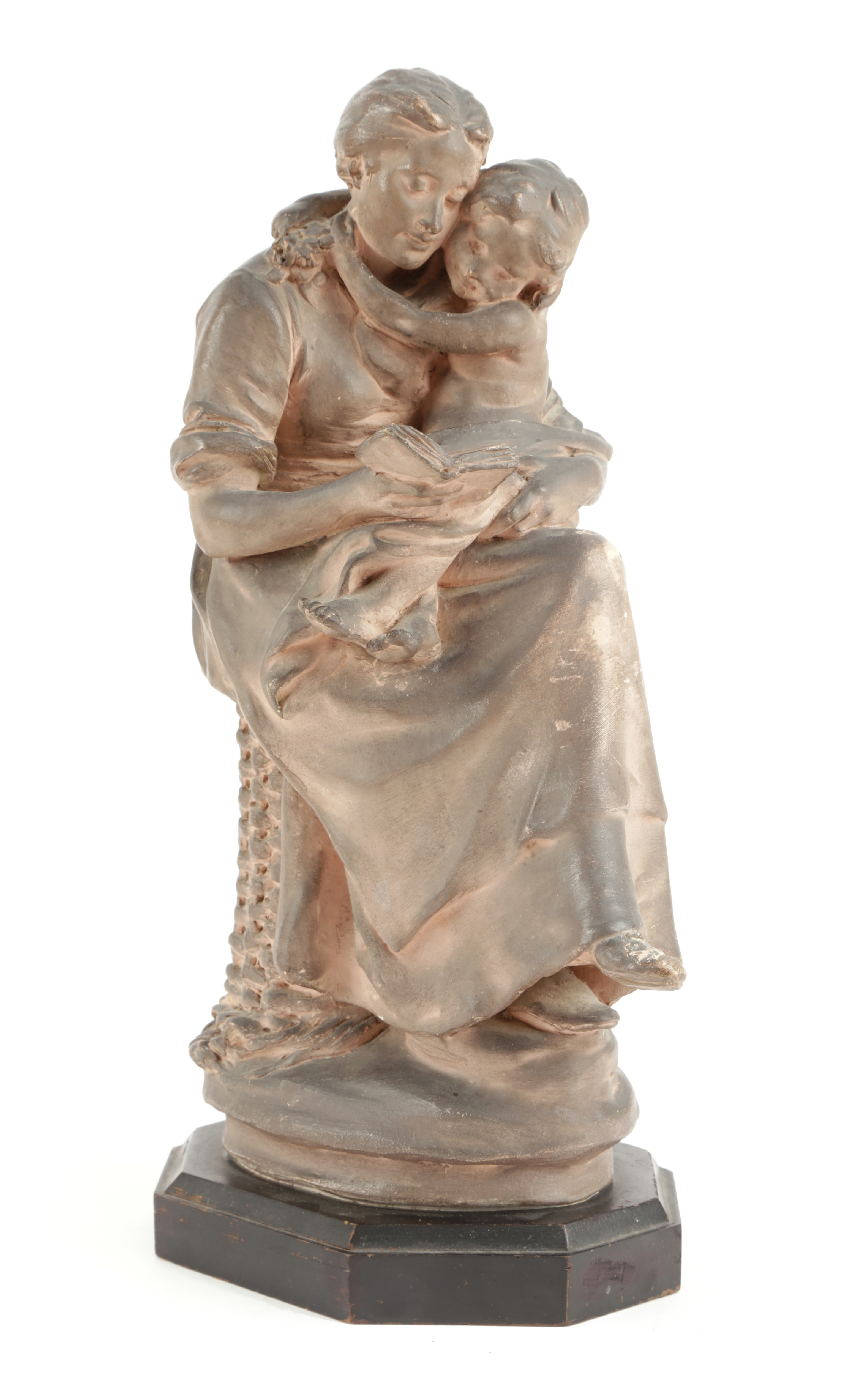 'FIRST LESSON'. A PATINATED TERRACOTTA GROUP