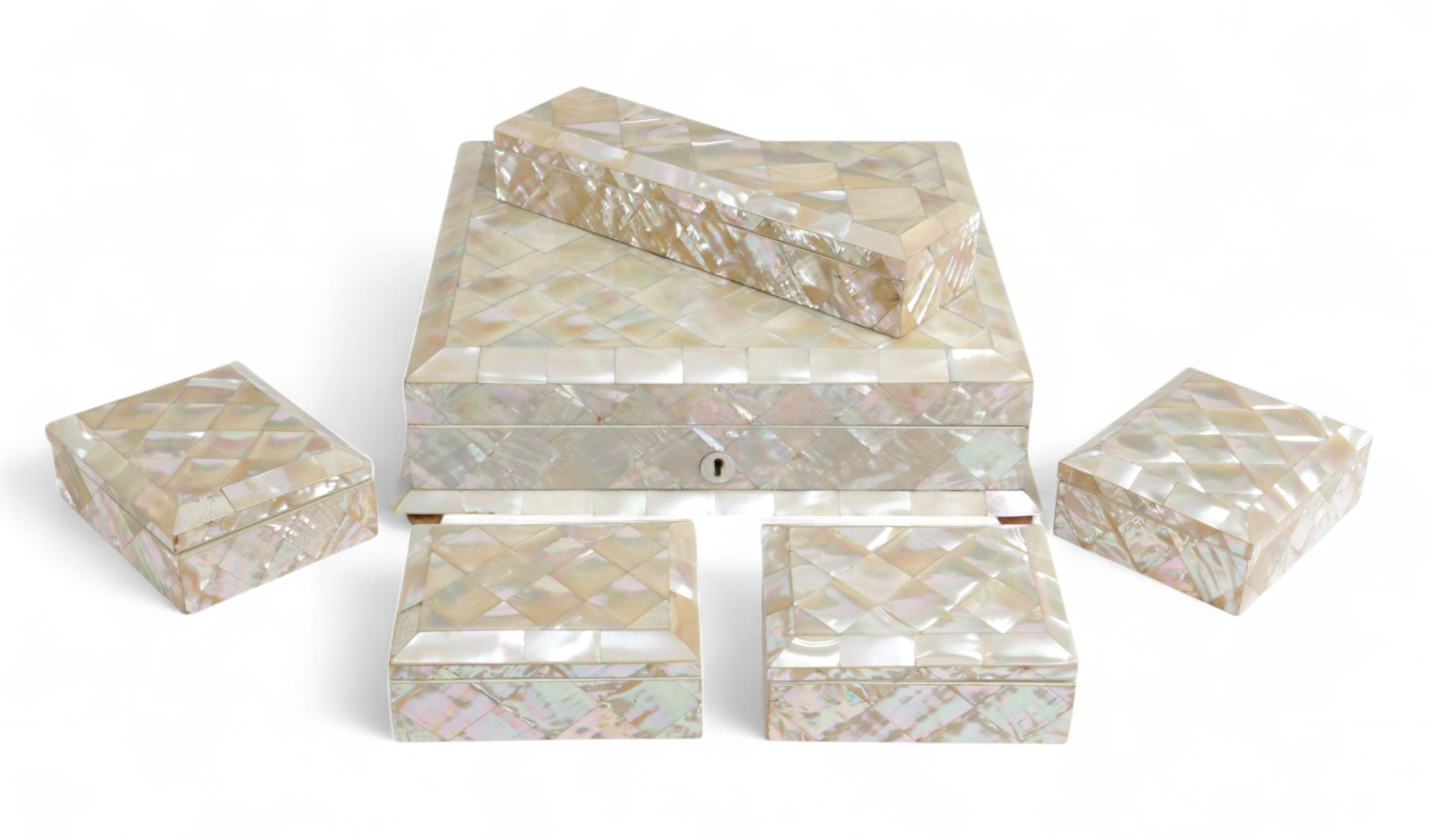 λ AN EARLY VICTORIAN MOTHER OF PEARL DRESSING BOX