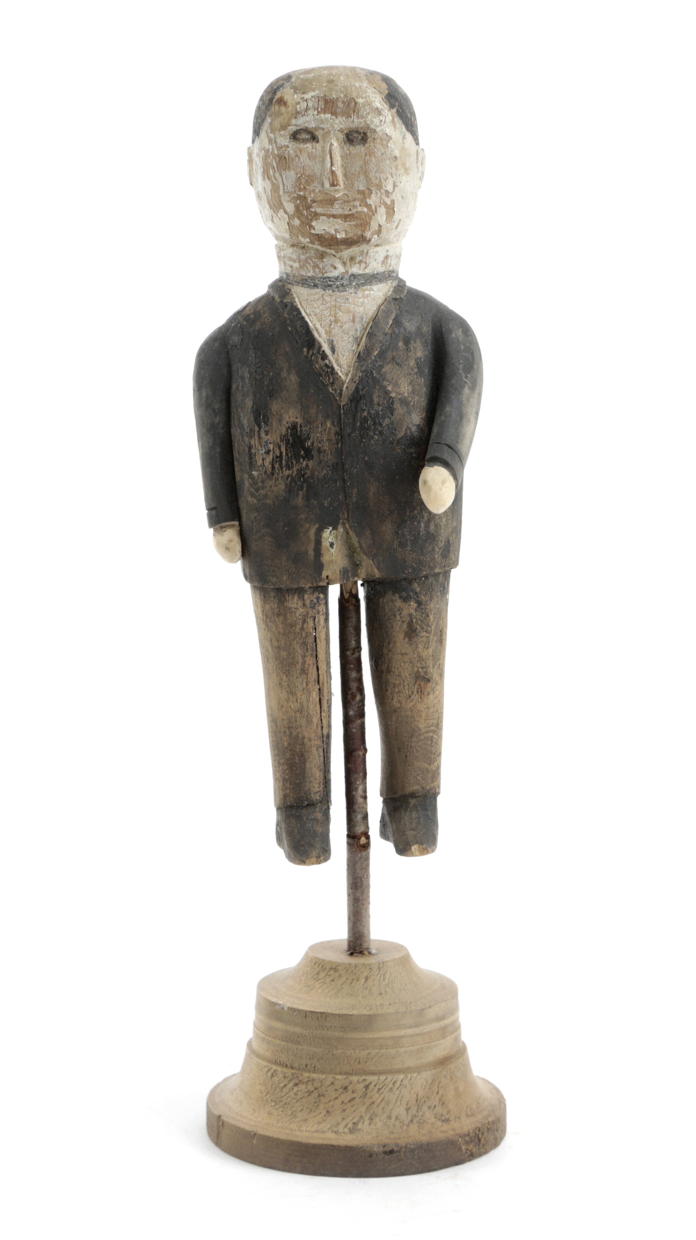 A FOLK ART CARVED AND PAINTED WOOD FIGURE OF A MAN