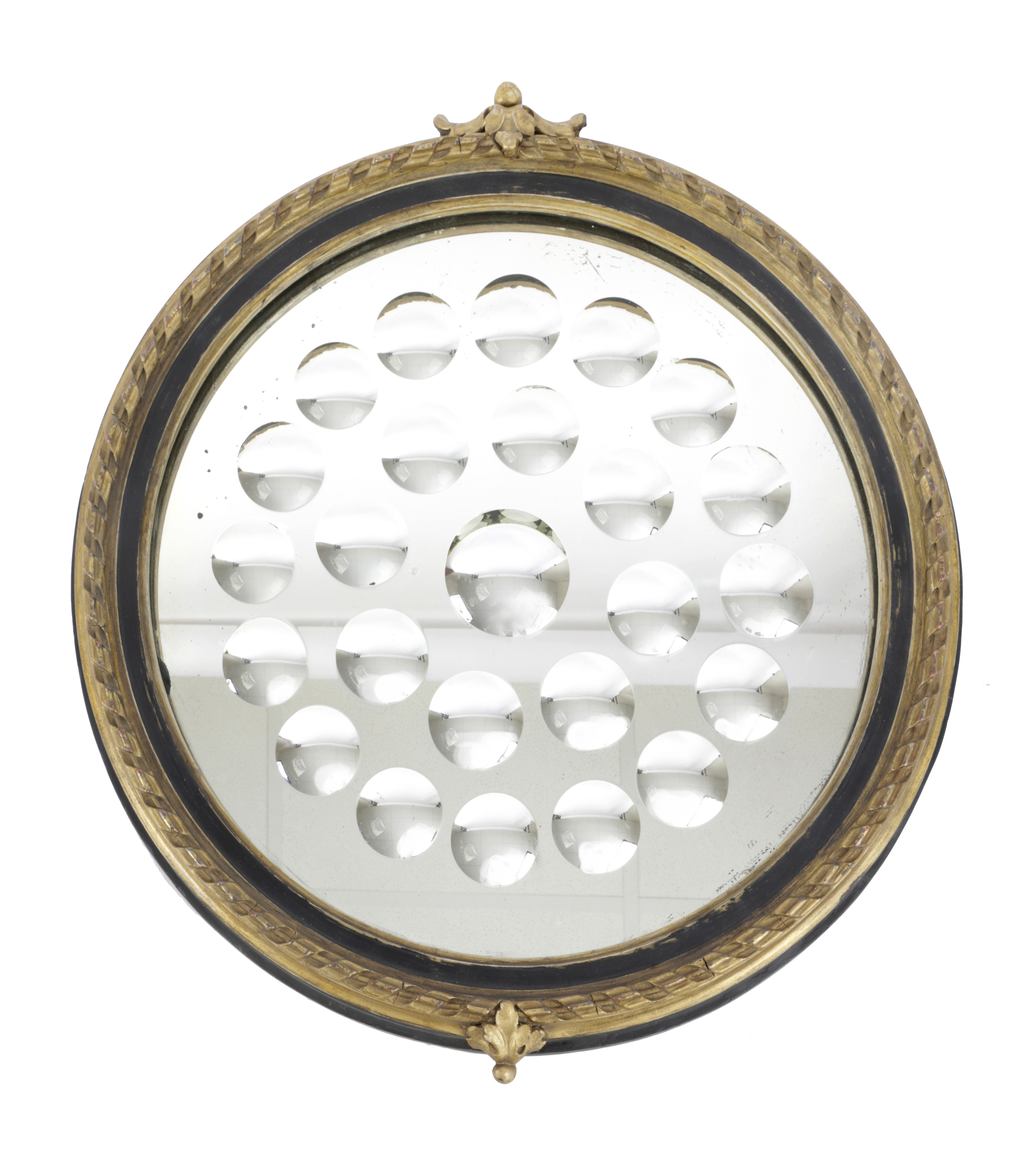 A LATE VICTORIAN GILT AND EBONISED SORCERER'S OR WITCH MIRROR