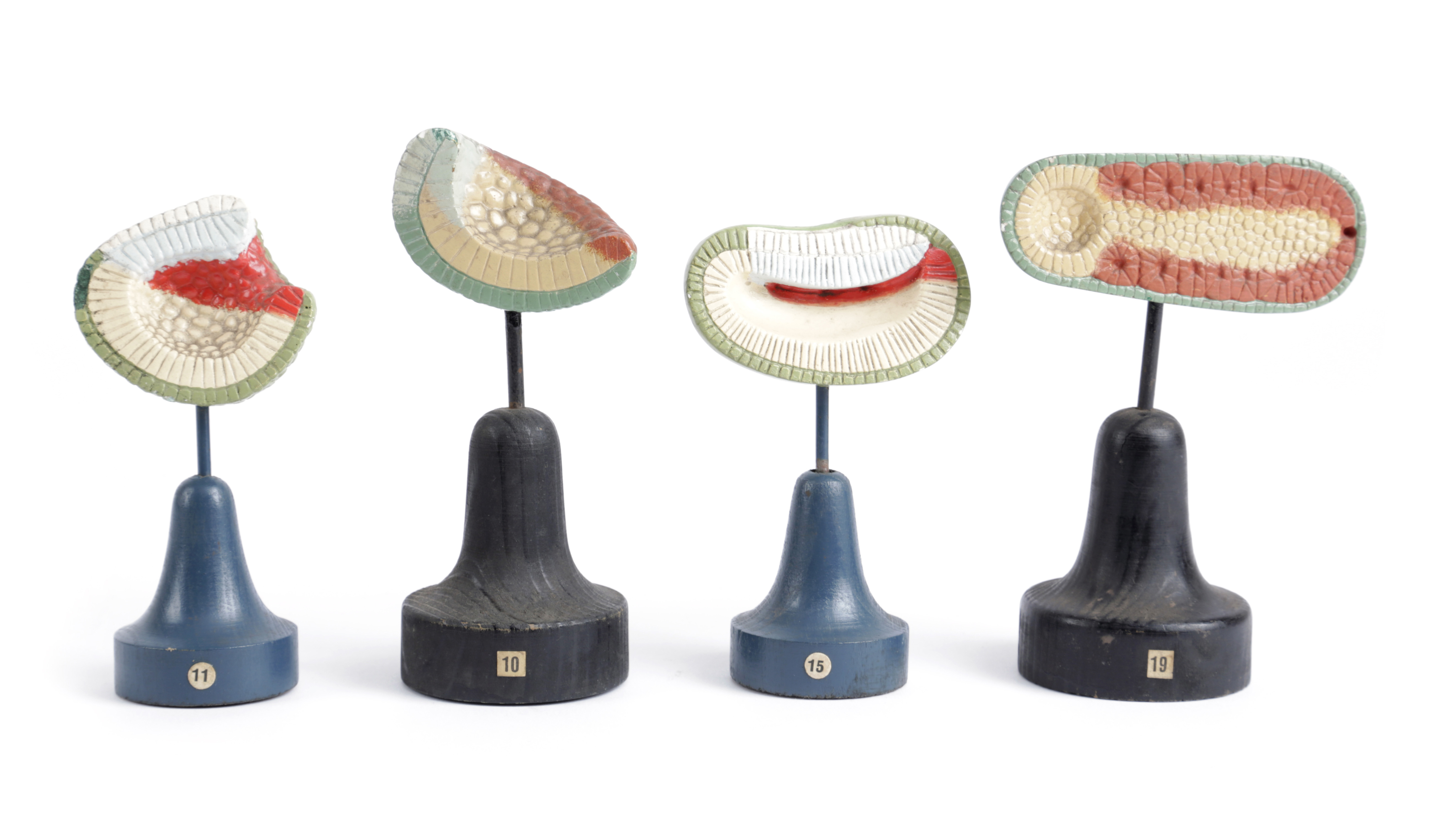 of fish egg or amphibian embryo development, on numbered, painted bases (4)