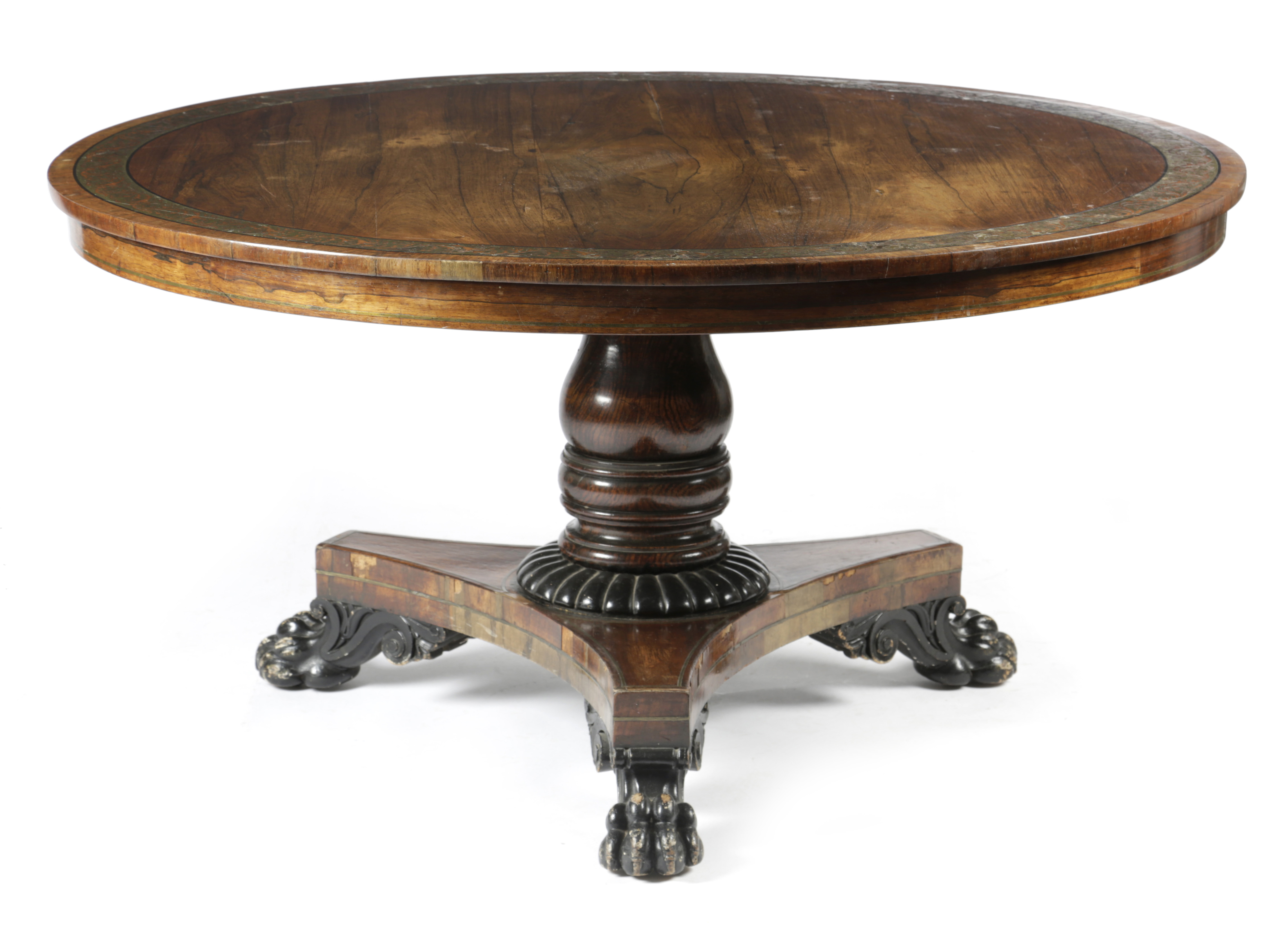 λ A REGENCY ROSEWOOD AND BRASS MARQUETRY CENTRE TABLE