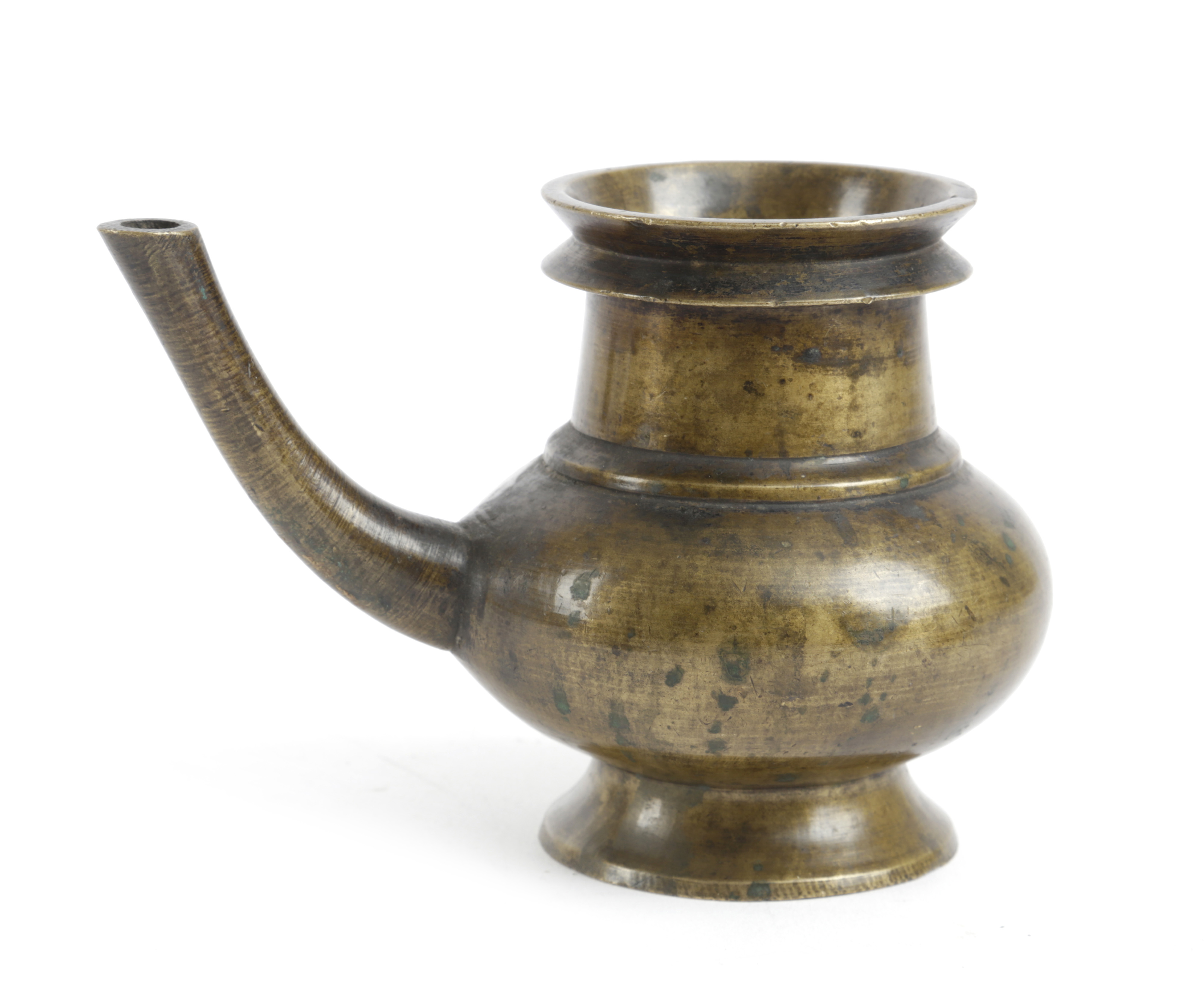 AN INDIAN BRASS LOTA VESSEL OR KINDI